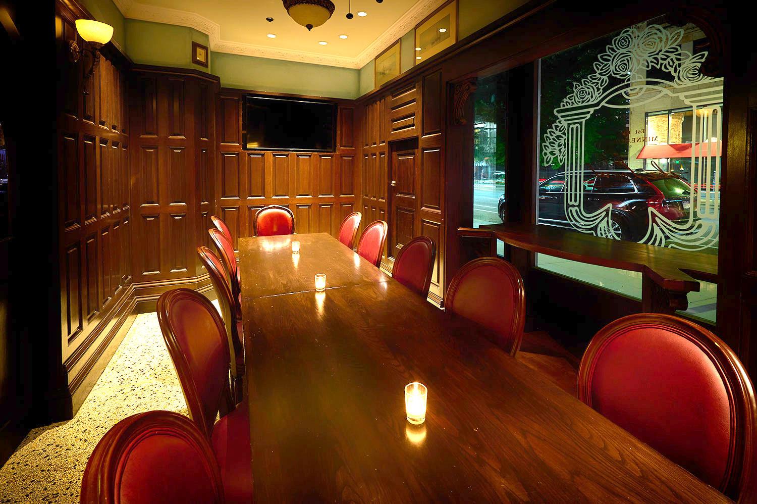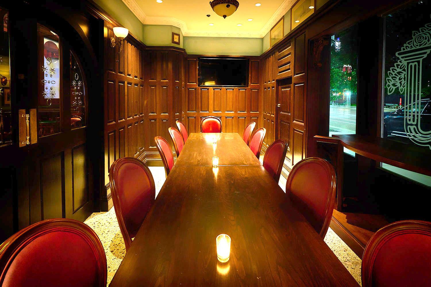 Hand-carved wooden panels and intricately engraved glass separate The Sanctuary from the rest of the pub, in an area that is not so out of the way that it misses all the action, but provides an exclusive space, just for you and your guests. Casual and elegant, it is perfect for small informal corporate mixers or smaller group dinners.