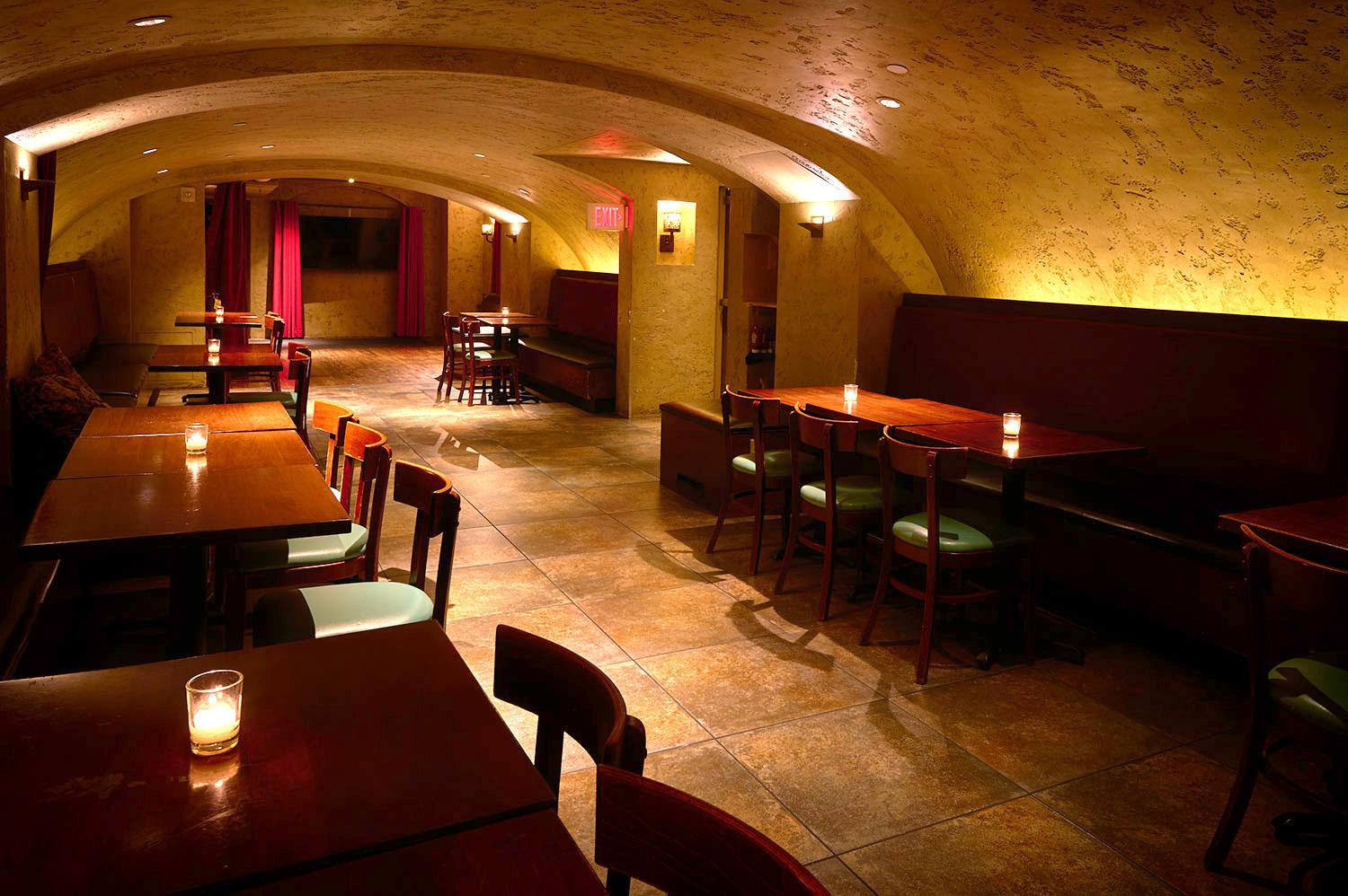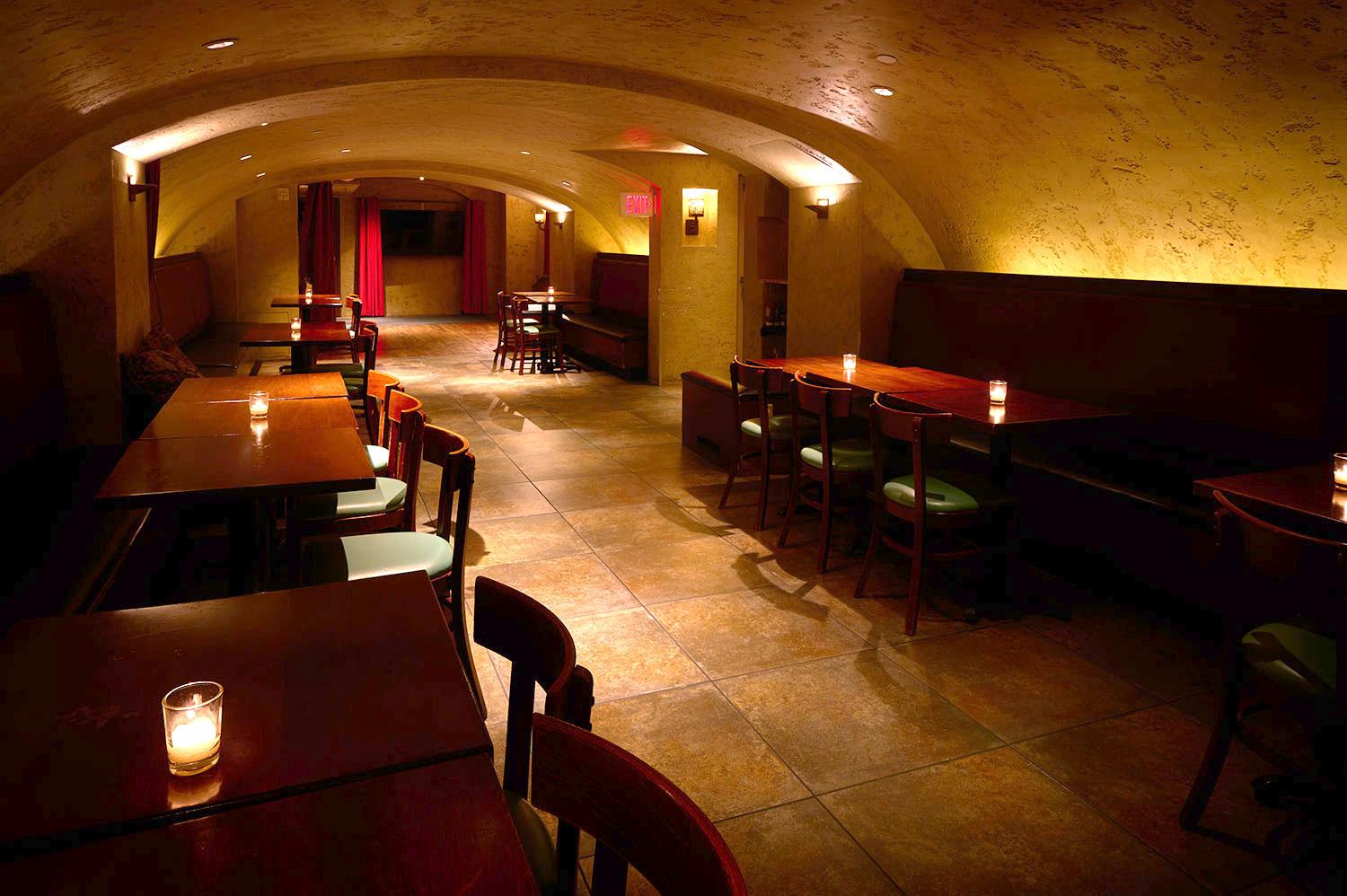 The Hollow is complete with flickering candlelight, leather benches, and wooden accents that can accommodate anything from a classy cocktail party to an unforgettable groom’s dinner or holiday banquet.