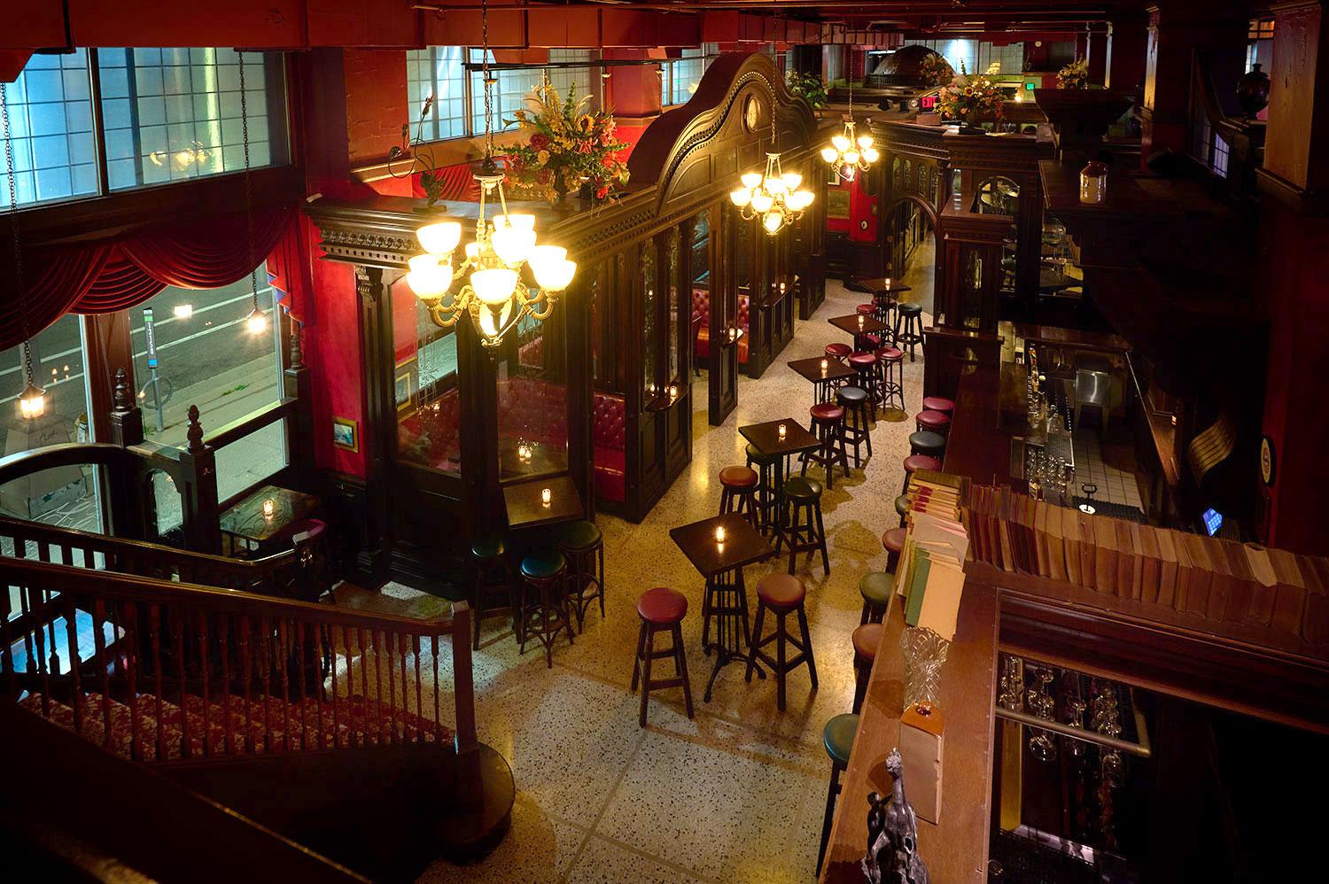Appropriate to its name, The Palace stretches throughout the back half of one side of the pub flanked by tall ceilings and glorious, rich carved woodwork.