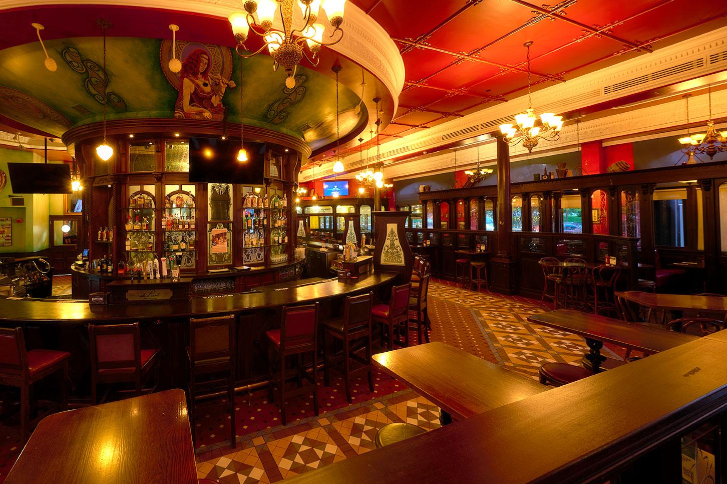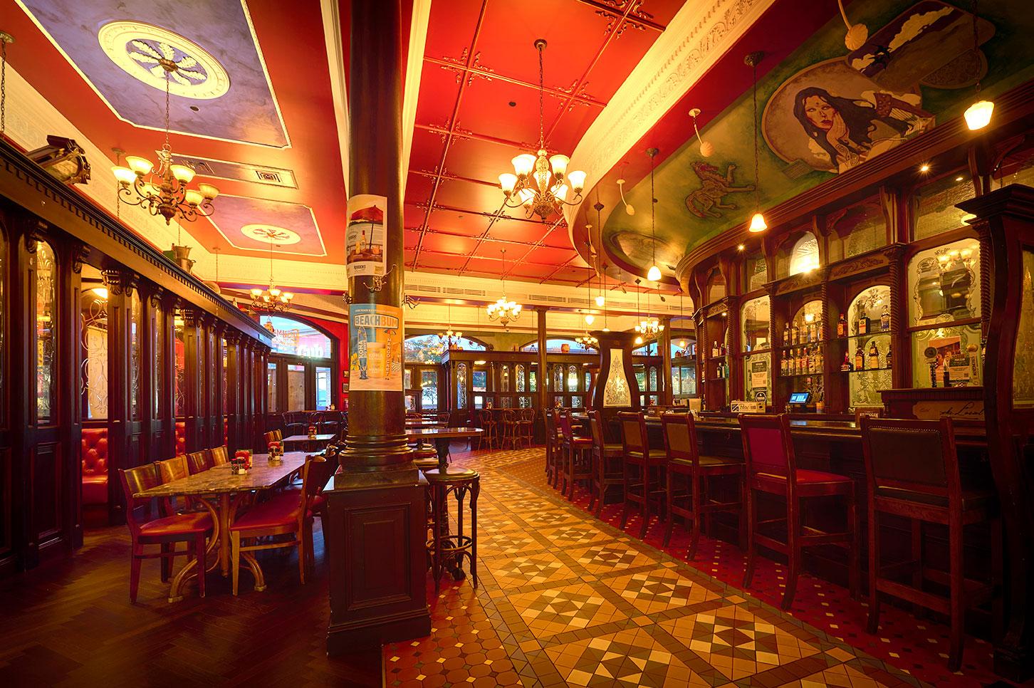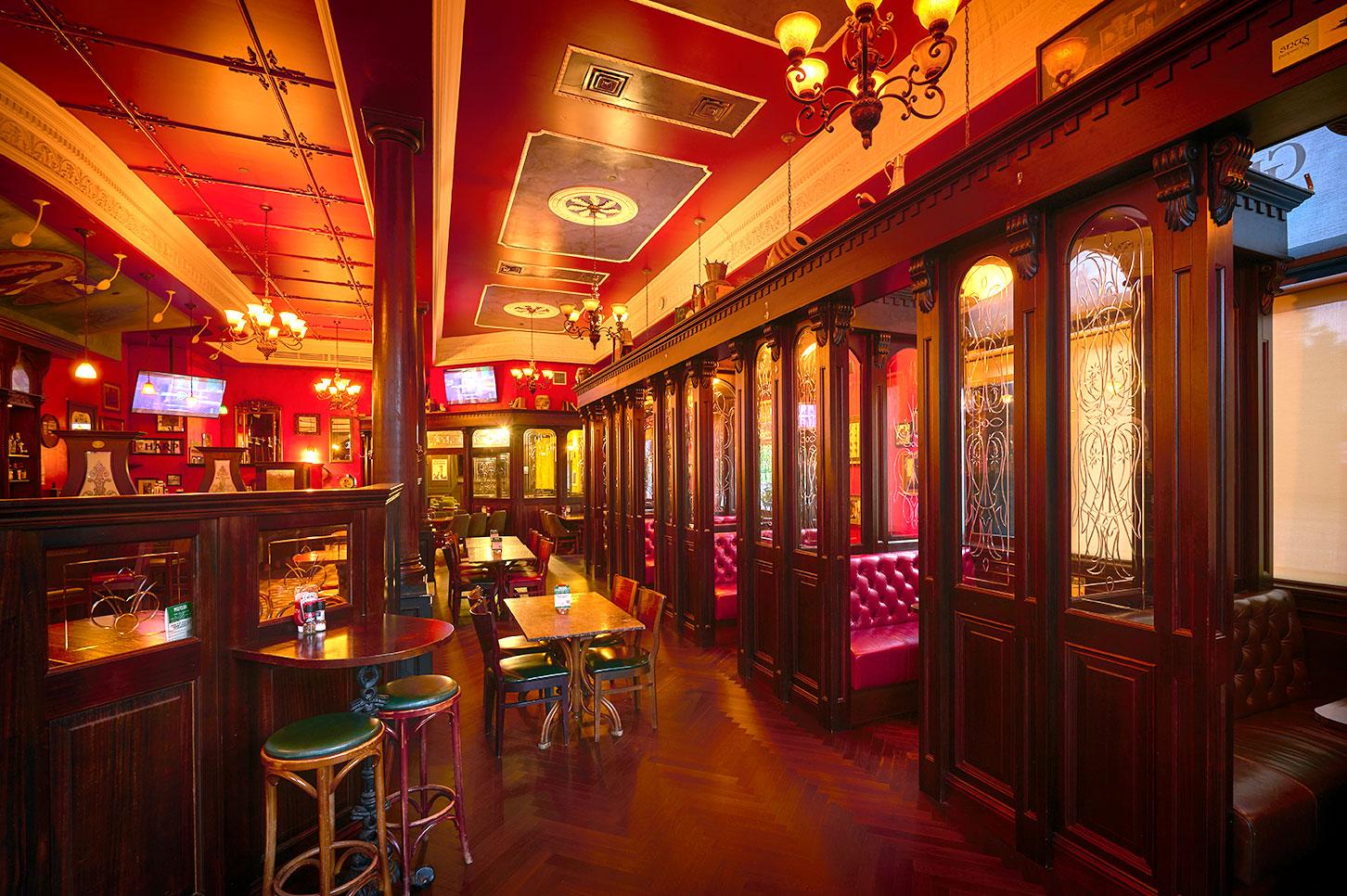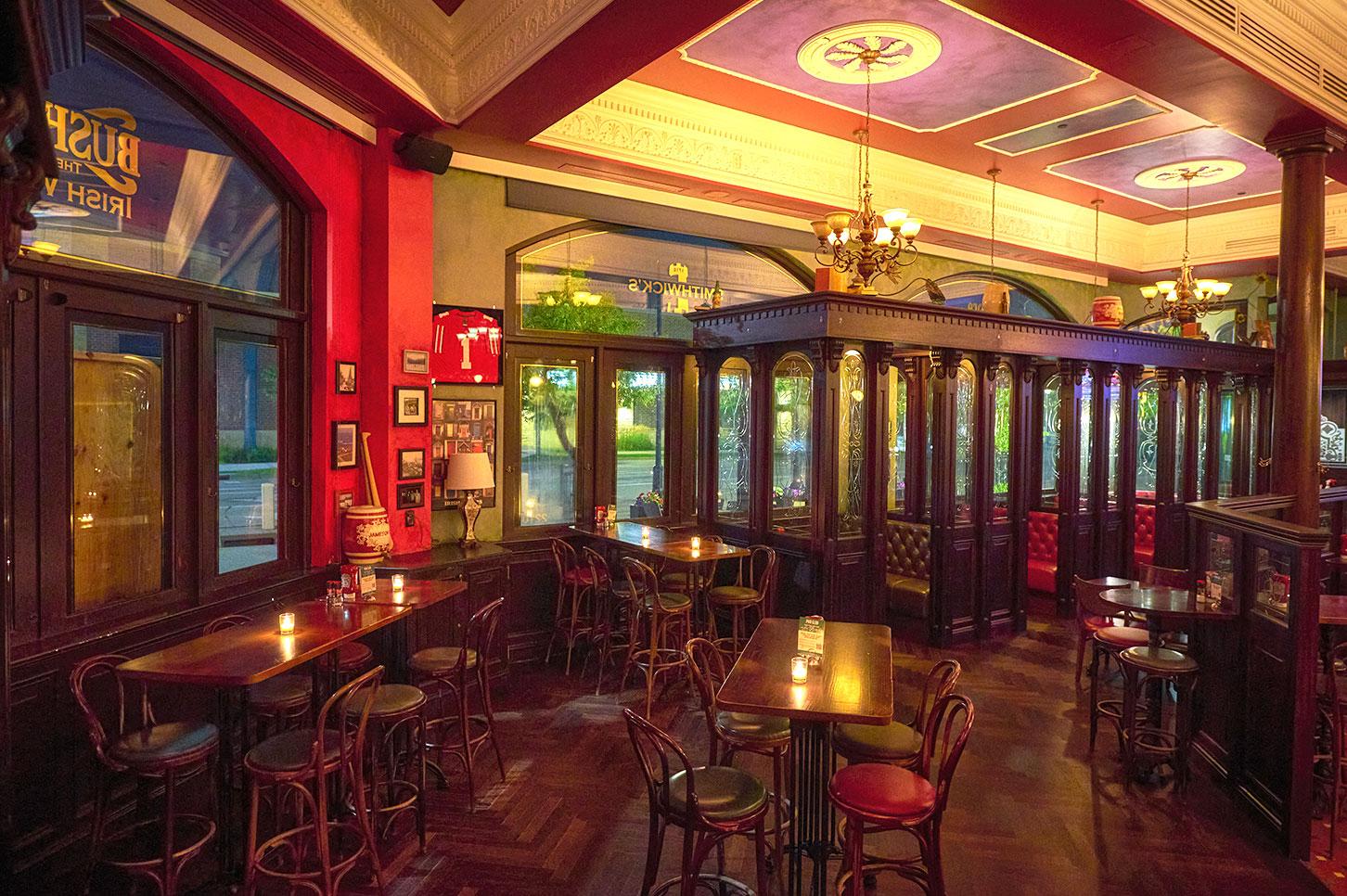 Designed and built in Ireland, the majority of our entire pub was shipped across the ocean and assembled onsite. From the beautifully carved wood, cut glass and green marble bar to the hand-painted ceiling that is awash in a warm, aged glow — every detail is welcoming you in and encouraging you to celebrate.