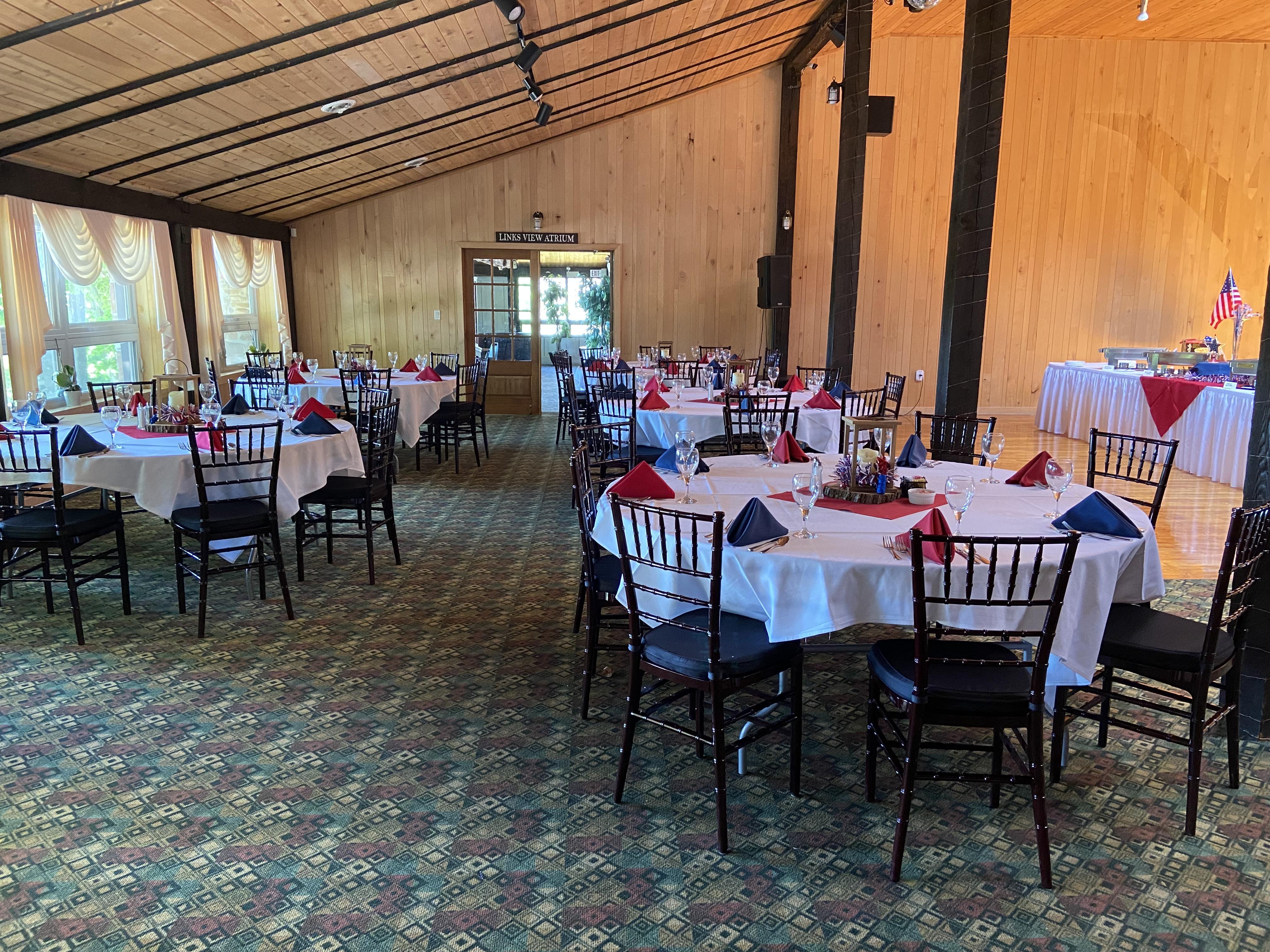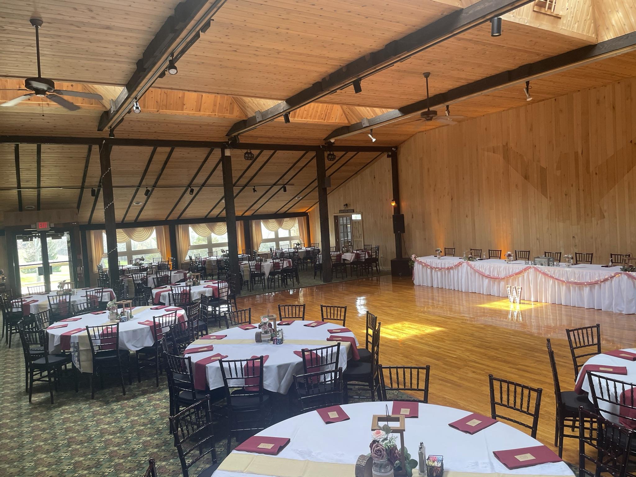 Up to 5 hours from when guests arrive (Cocktail Hour, Dinner and Dancing) White linen tablecloths, colored linen napkins and beautiful chairs White linen skirted head tables, colored linen napkins & champagne glasses (if needed) Large covered deck space outside of the Thunderbird Room (added time & set-up extra for Ceremonies) Cake table with linen Buffet or station table presentations for your caterer (if needed) Convenient parking and smoking areas Set up and clean up included
