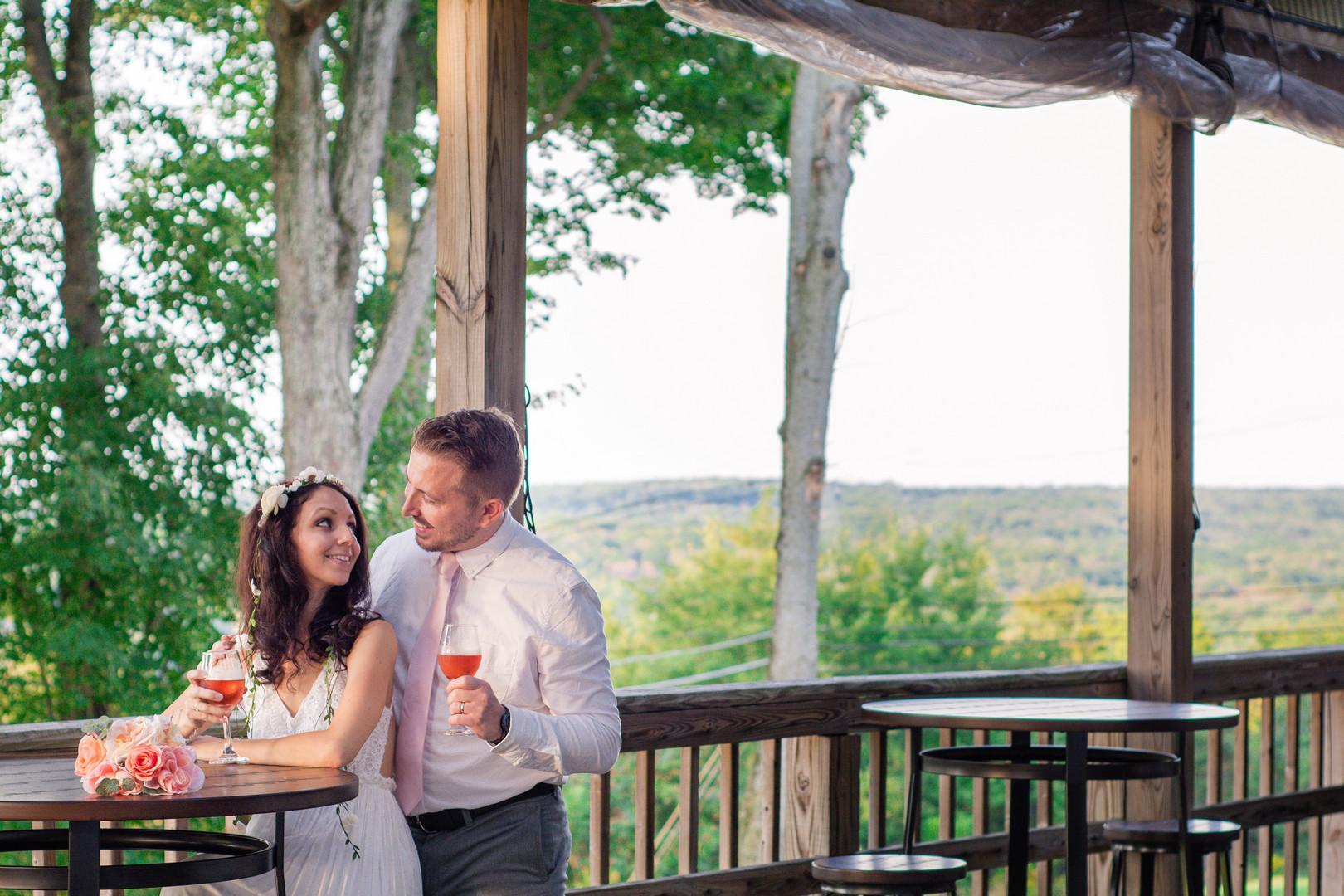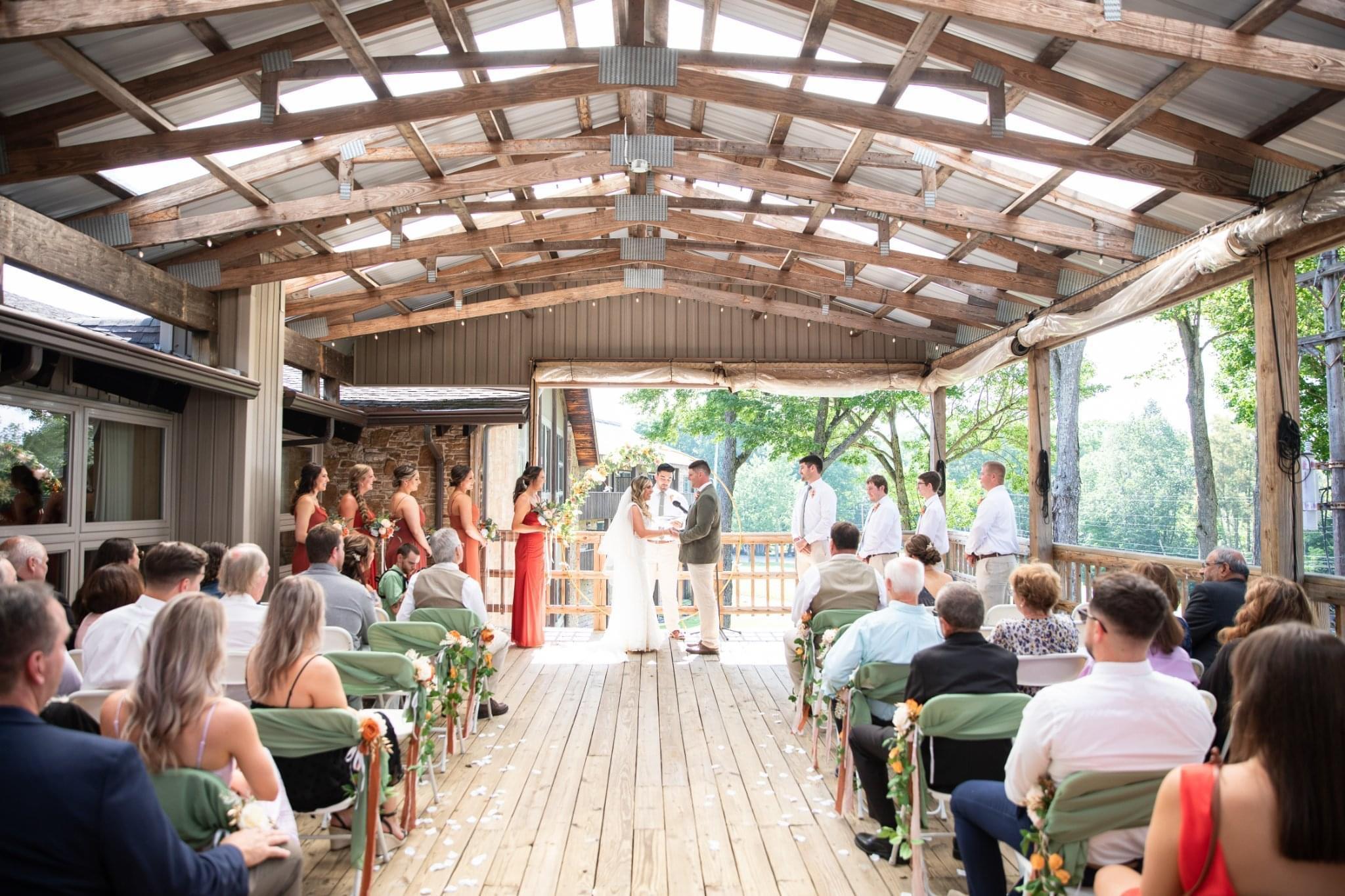 Chairs for the Ceremonies and High Top Tables at the edges of the deck for Receptions
