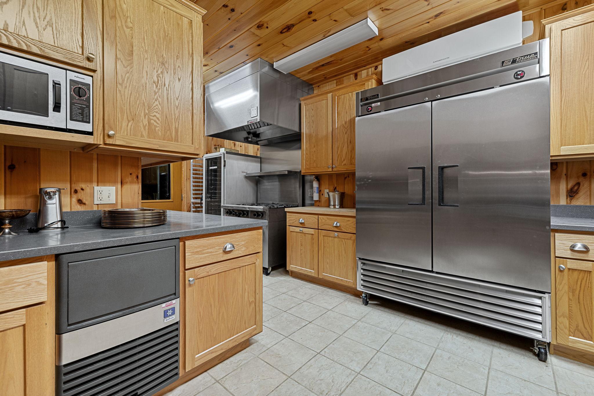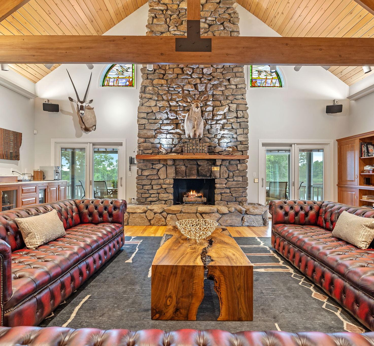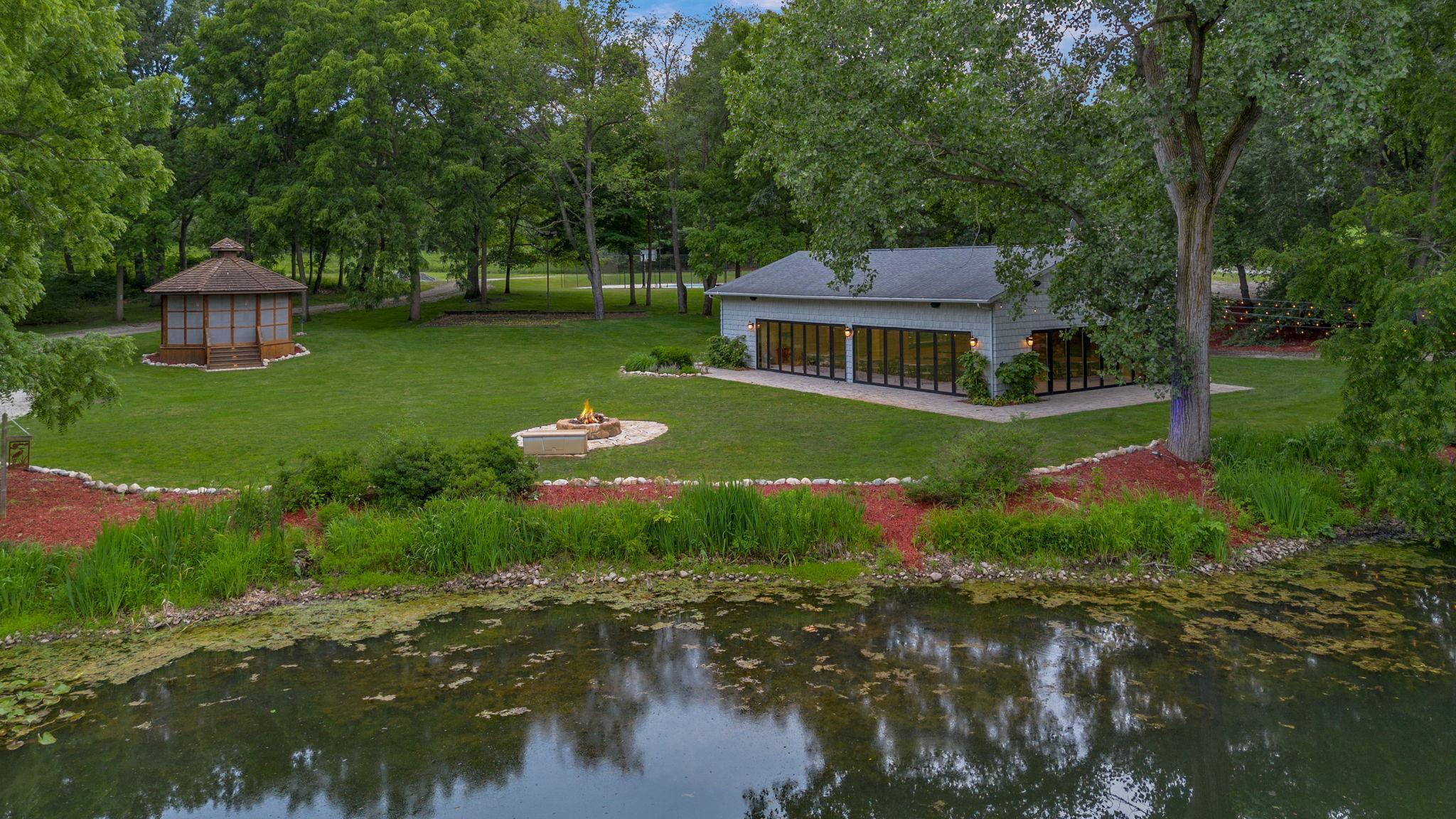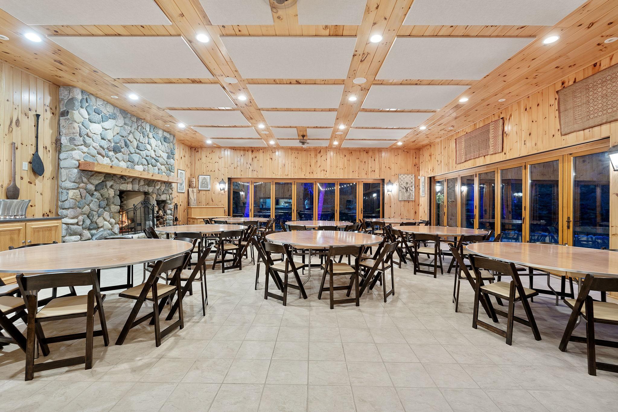 This events space known as the "party barn" is equipped with indoor and outdoor sound, gorgeous lakefront views, and big firepit