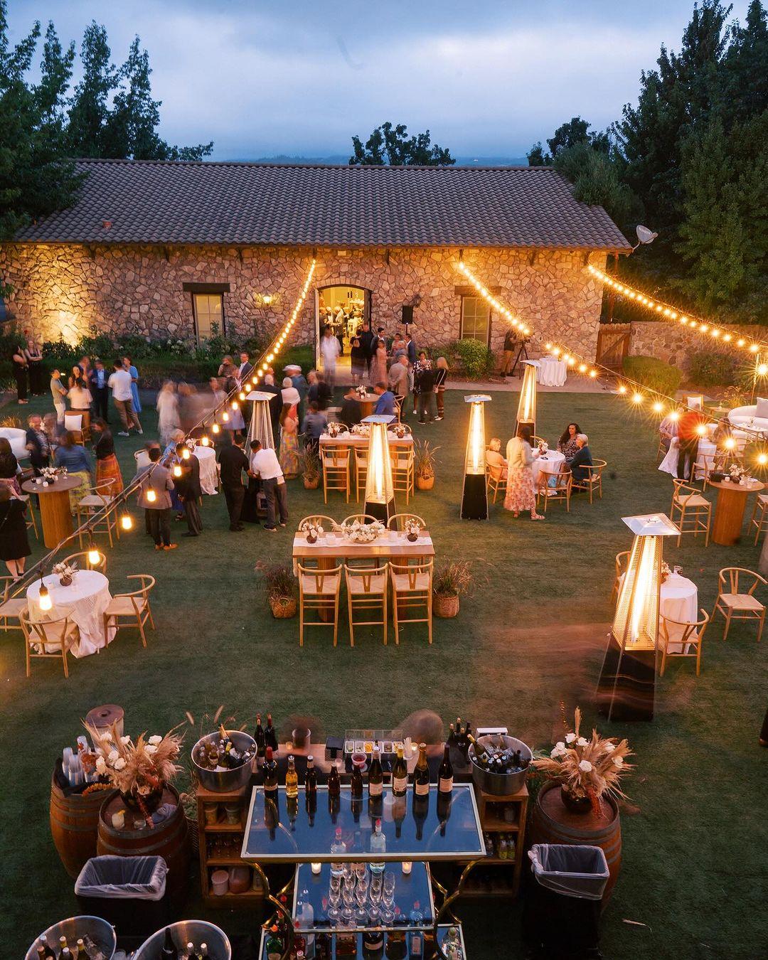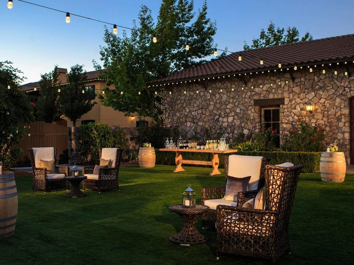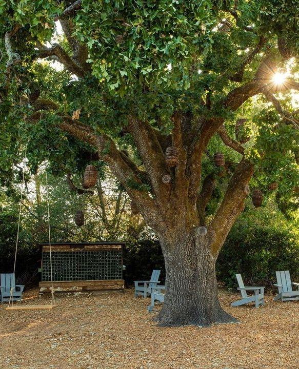 Adjacent to our small plot of grape vines, this beautiful outdoor space is situated under our 400-year-old valley oak tree. Lanterns that hang from the tree create a dazzling display at dusk for small cocktail receptions and gatherings. It is the quintessential Wine Country experience. The Heritage Oak can accommodate 125 for ceremony and reception.