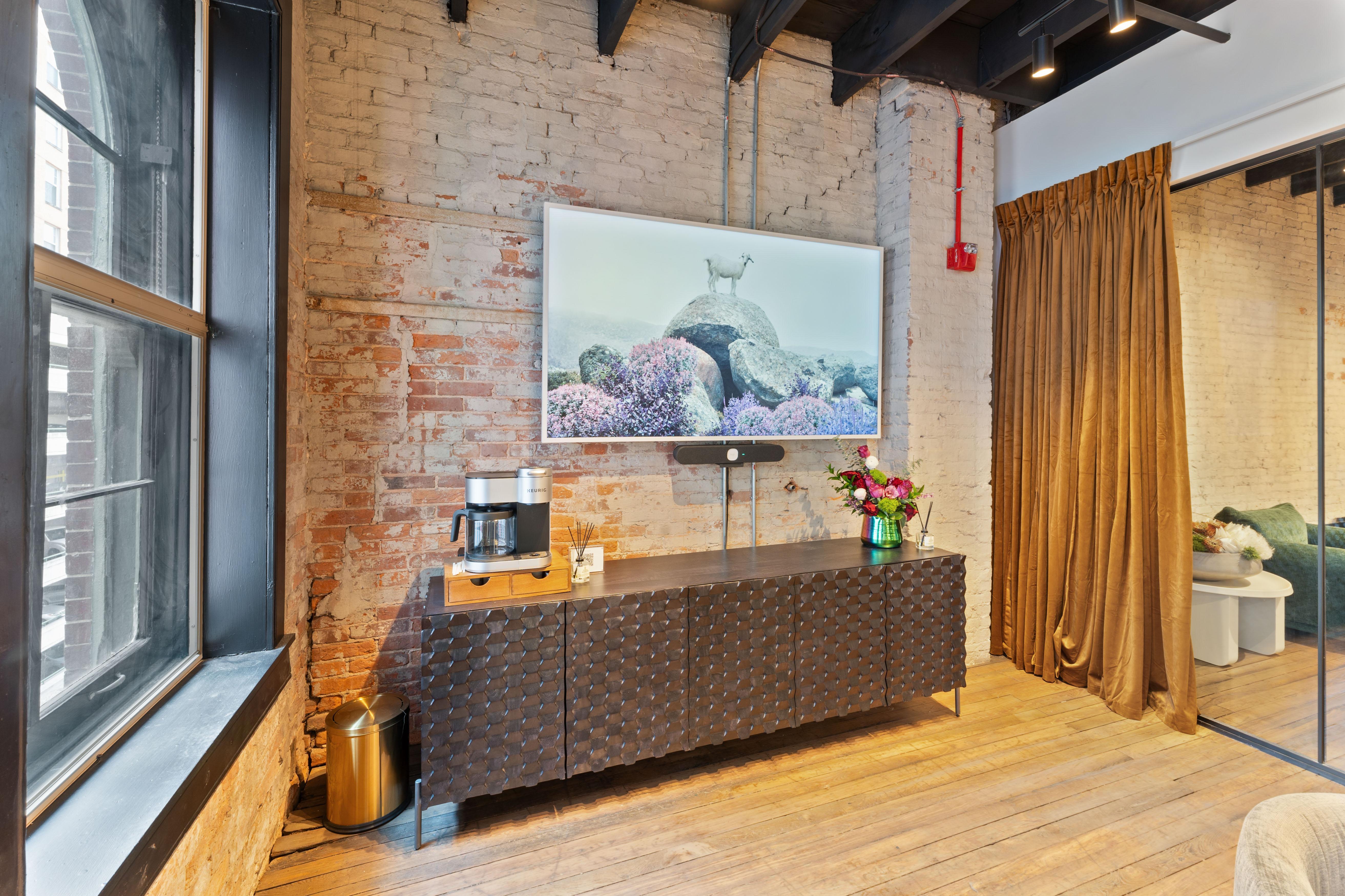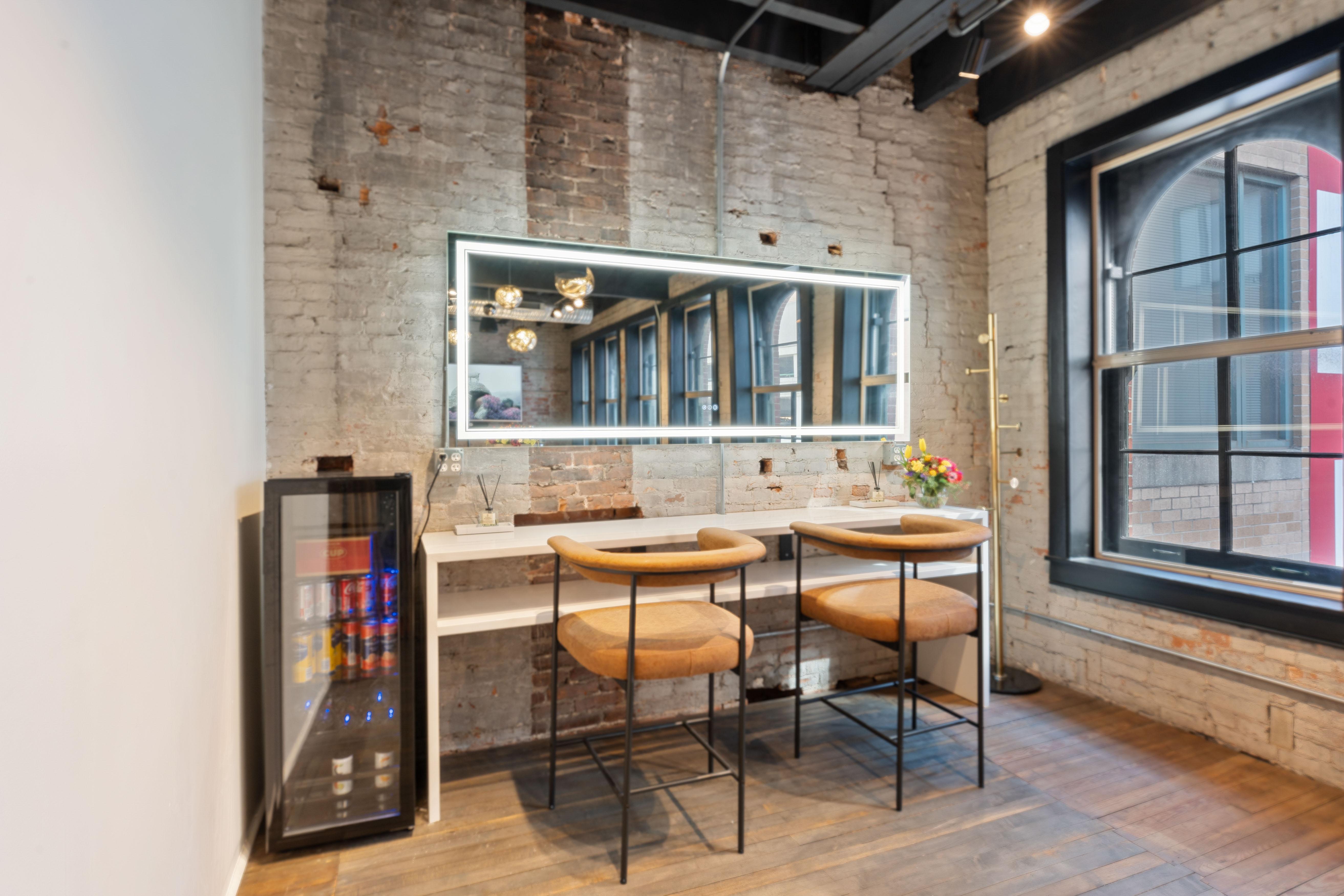 - Private room with flexible setup - Vanity station for touch-ups or getting ready - Curtains for increased privacy - Dimmable track lighting - Separate sound - Smart TV for presentations, slideshows, or entertainment - Optional use as a bridal suite, meeting room, or vendor prep space - Wi-Fi connectivity