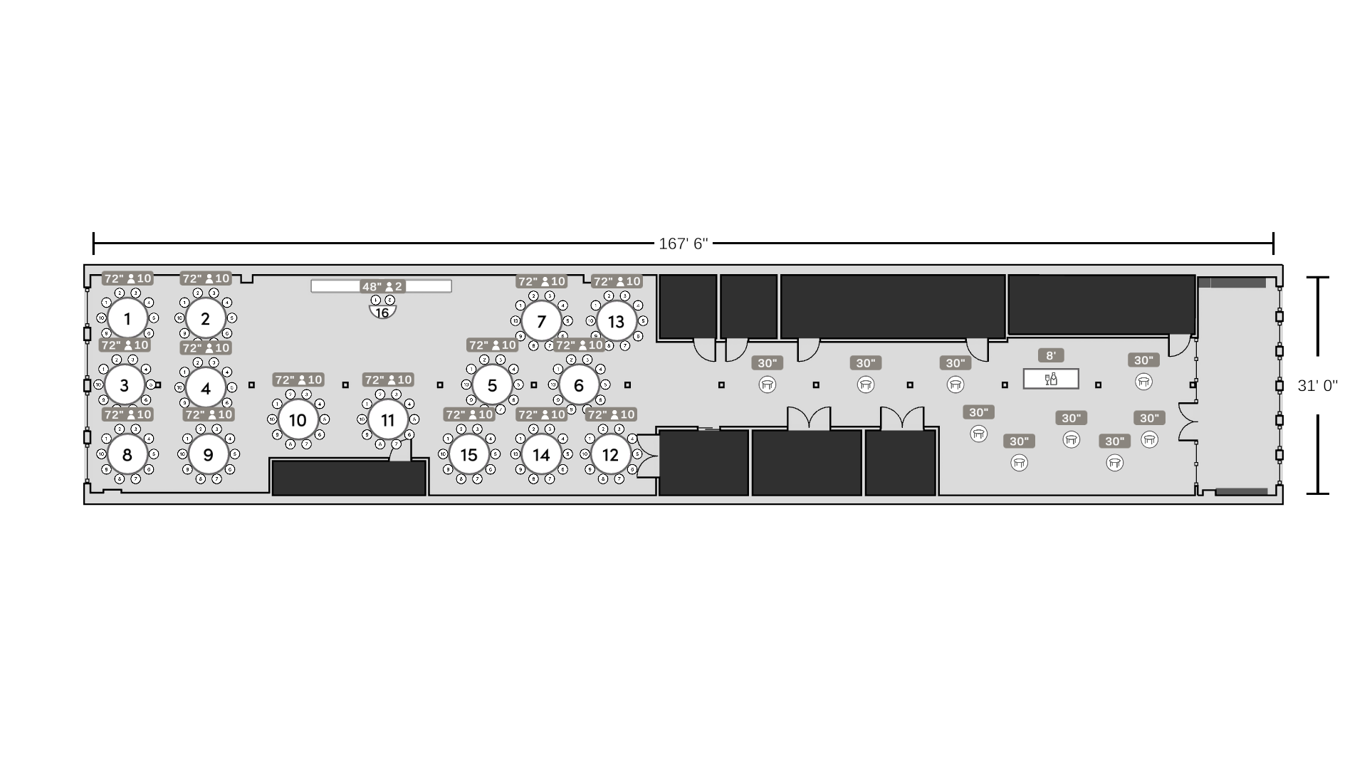 - Exclusive use of the main event space - Tables and chairs (standard inventory) - Access to lite A/V (speakers and microphone) - Standard event setup (based on selected floor plan) - Oversized windows with natural light and city views - Dimmable track lighting - WiFi throughout
