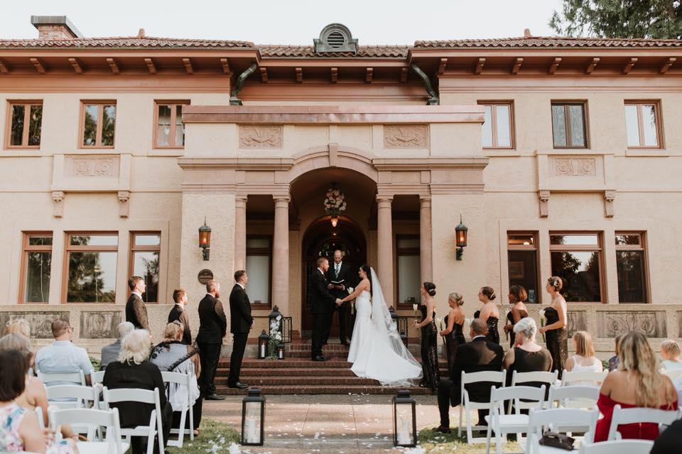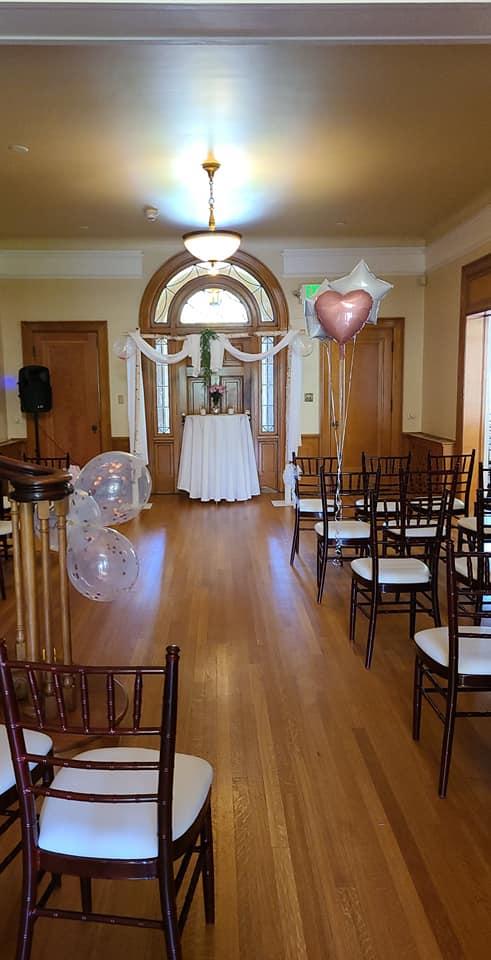 The Historic Lord Mansion and Coach House, located in Olympia's South Capitol Neighborhood, offers an elegant atmosphere and intimate setting with is beautiful architectural features and grounds, provides a memorable backdrop and setting for your wedding. The versatility of the property allows you to craft a special ceremony and/or reception to meet your desired needs and budget. You can have an indoor ceremony for lovely reception space within the Mansion's main living room and formal dining room. The second floor offers rooms for your party to prepare on your special day. You can also choose to have your ceremony on the front lawn in front of the grand entrance with side doric columns. For smaller weddings or those on a budget, we offer rental of our adjacent Coach House with maple hardwood floors and built in buffet counter. Rentals include setup and take down of our inventory of tables and chairs! Event supply decorations are available to rent!