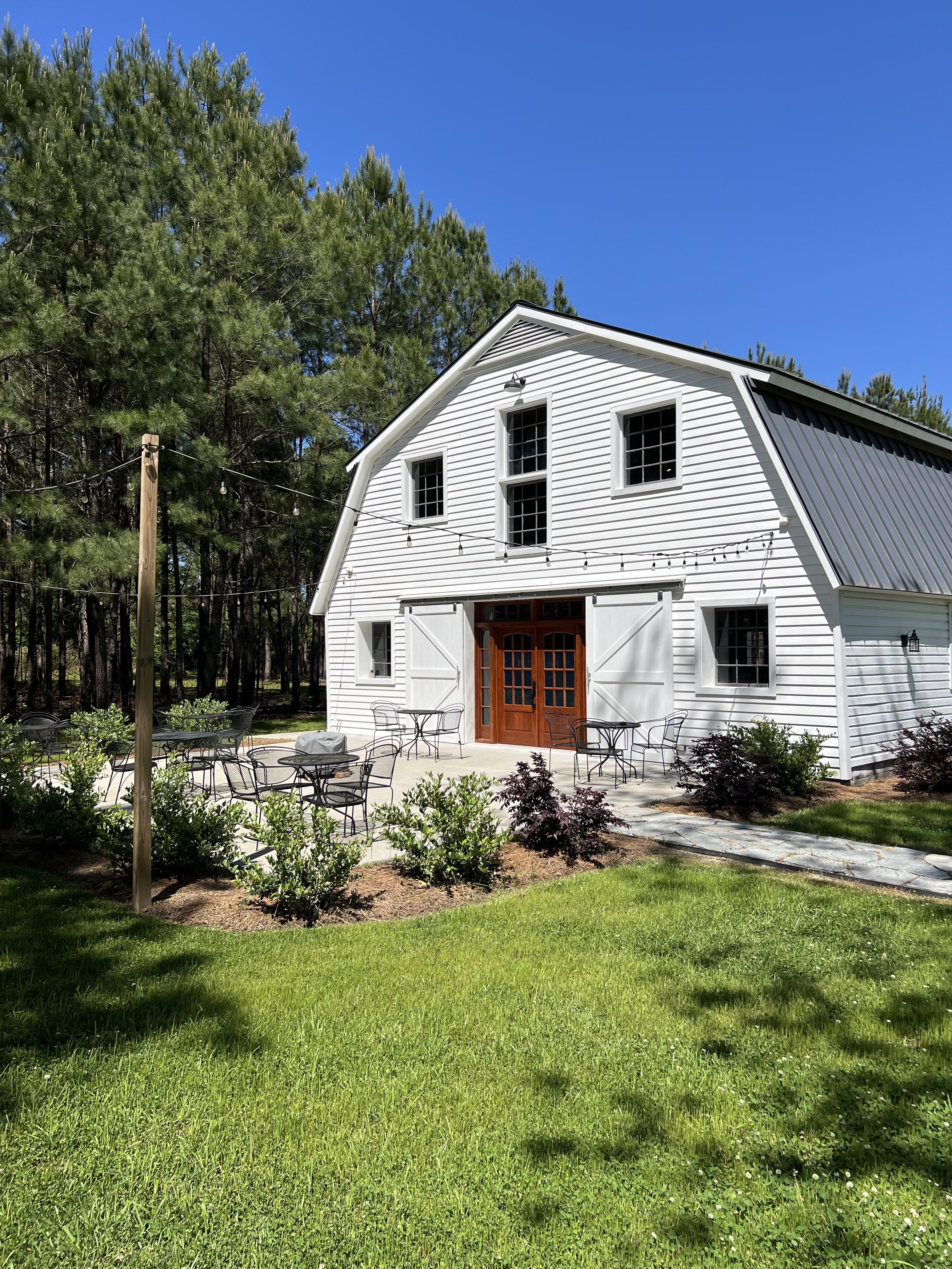 The Lucas Farm was originally an 1875 tobacco farm. It has been transformed into a picturesque estate nestled in nearly 500 acres of longleaf pine stands. The farm features a refurbished farm house where the bride and bridal party get ready, a bar shed, caterers kitchen, climate controlled barn featuring the original wood inside, a new barn that can be used as the plan or rain backup plan, a lovely pecan orchard for outdoor ceremony and a refurbished schoolhouse for the groom and groomsmen to get ready. The venue can seat as many as 200 guests. The Lucas Farm has a serene and relaxed atmosphere.