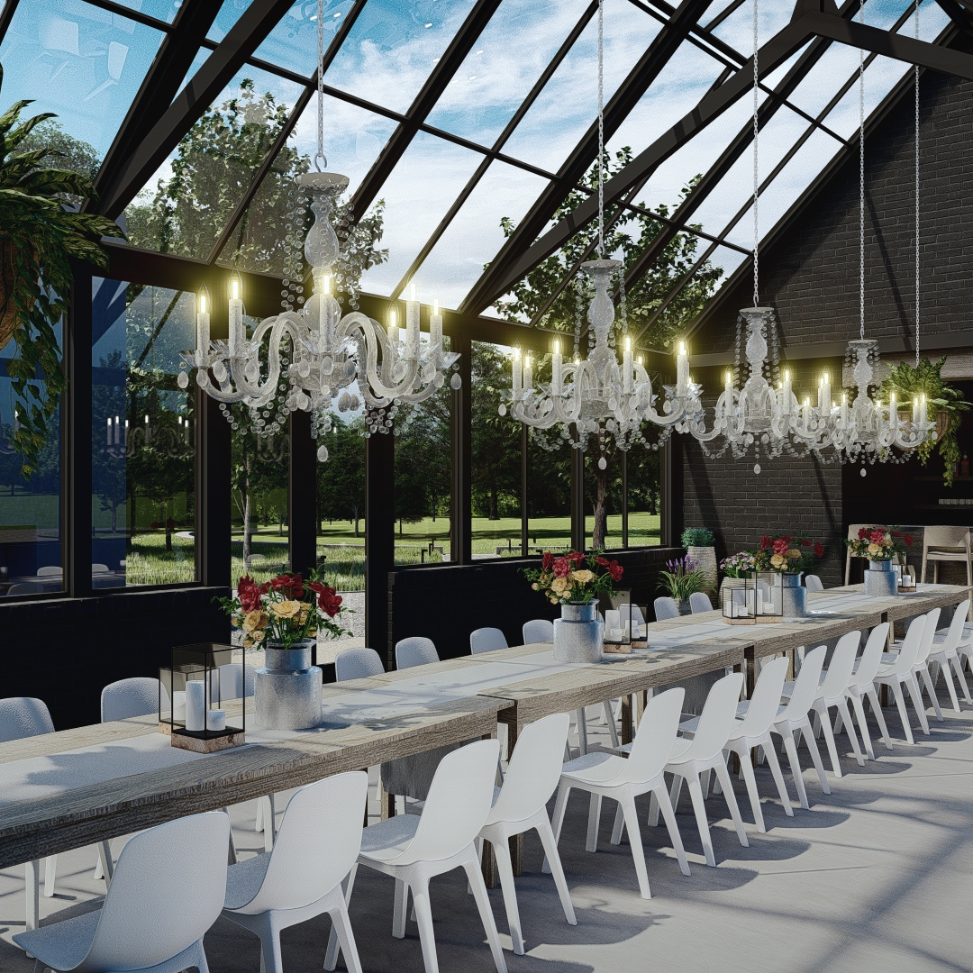 The Greenhouse is perfect for cocktail hours, small ceremonies or receptions, family gatherings, and micro-weddings.