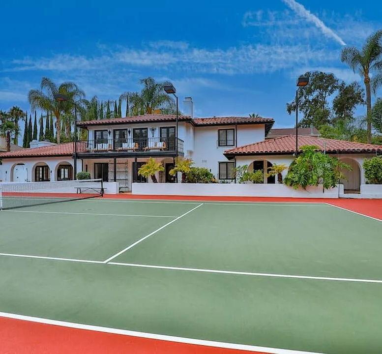 Available Short Term to Long Term, Priced Seasonally & Based on Length, Please Inquire. Fully Furnished. 3 bedrooms Furnished with 5 Queen beds, 3 bathrooms. Mission-style Tennis Court estate in Sherman Oaks. Heated pool and jacuzzi - Huge outdoor space. NEW Pickleball set up, shaded by royal palms, cypress, and eucalyptus trees, reminiscent of a classic Hollywood film-era estate. Spacious kitchen.