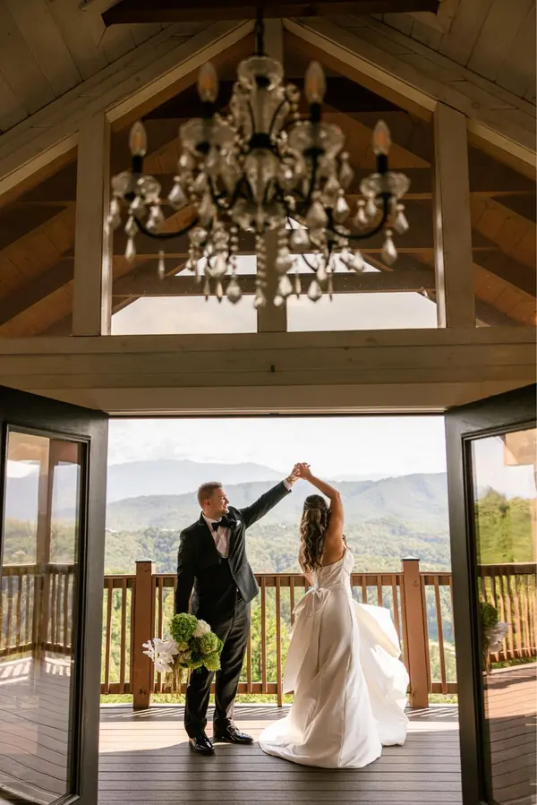 The open-air patio provides breathtaking views of the Smoky Mountains, making it the perfect backdrop for your outdoor wedding ceremony. As the sun sets, the patio transforms into a romantic space where you can dance the night away beneath our bistro lights and a canopy of stars, with the Pigeon Forge cityscape adding a magical touch in the distance.
