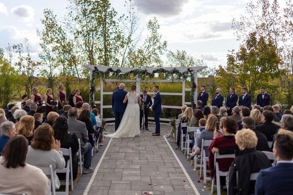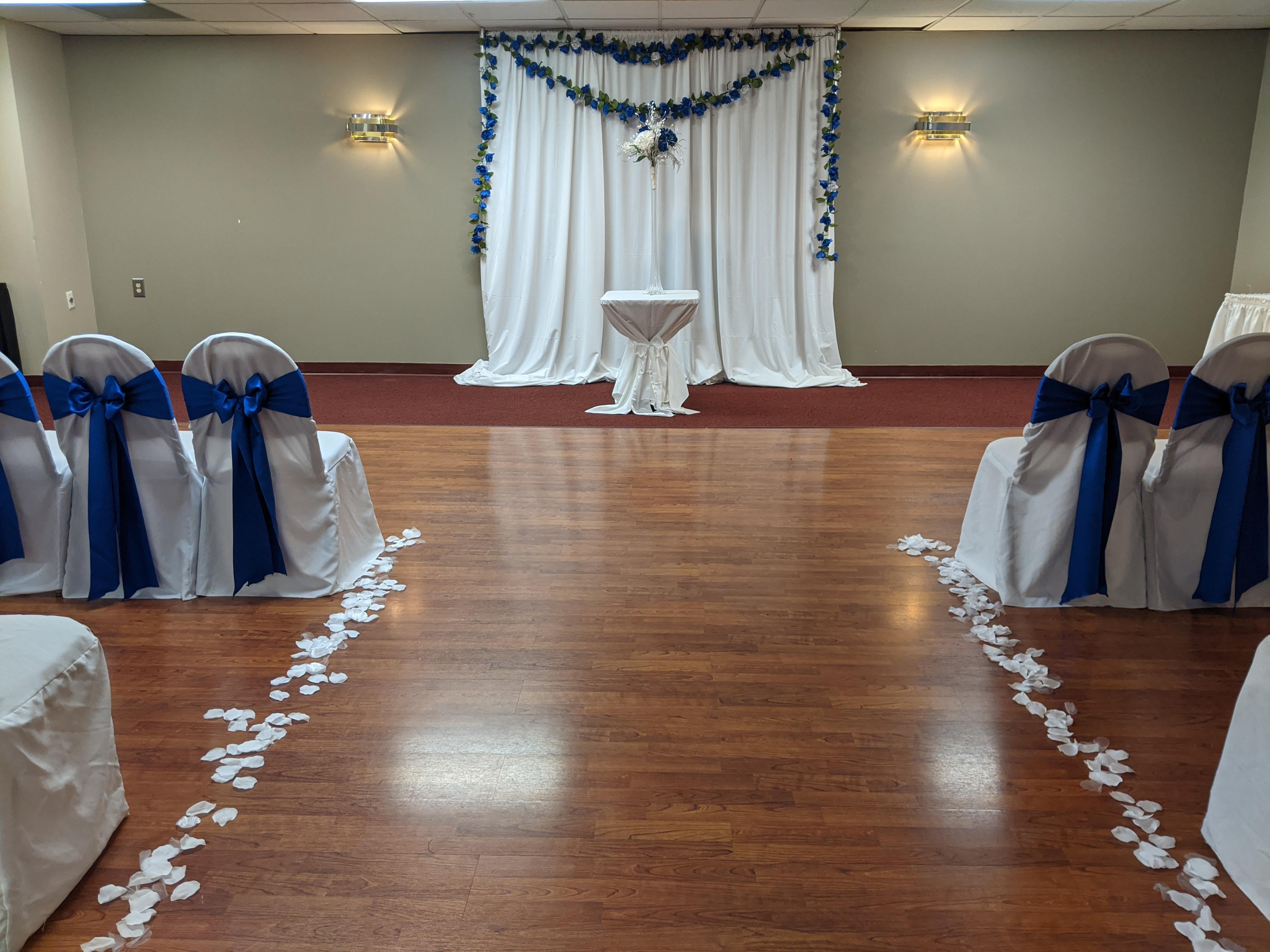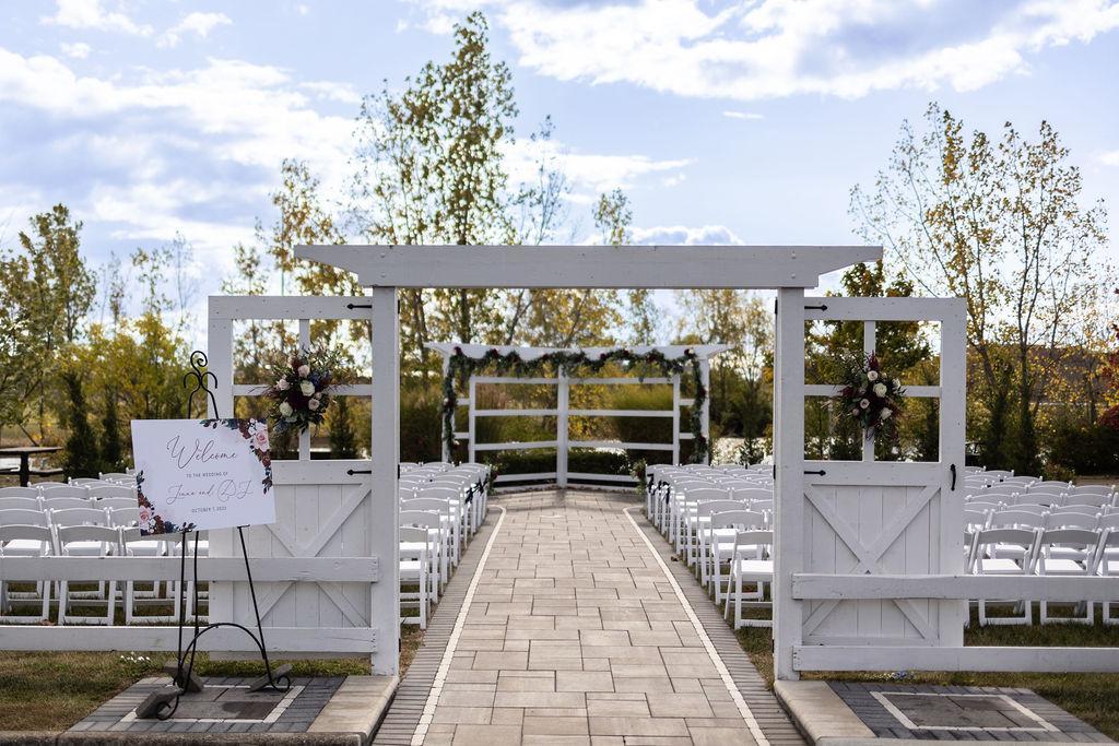 Spring, Summer, or Fall the option to be married outdoor is available in the Ceremony Garden. With an arbor ready to decorate and simple white chairs, this blank canvas can become a beautiful background for a ceremony.