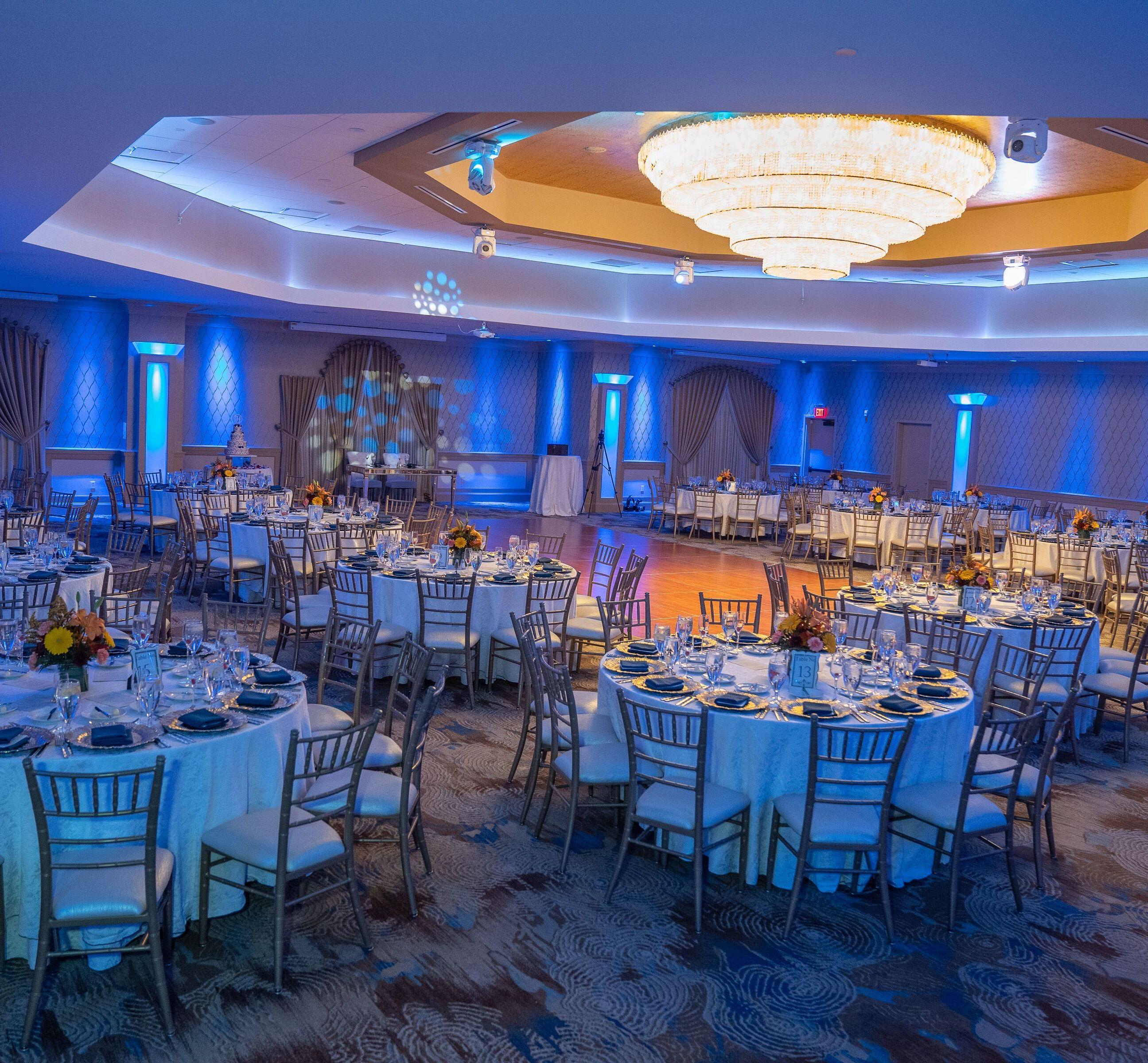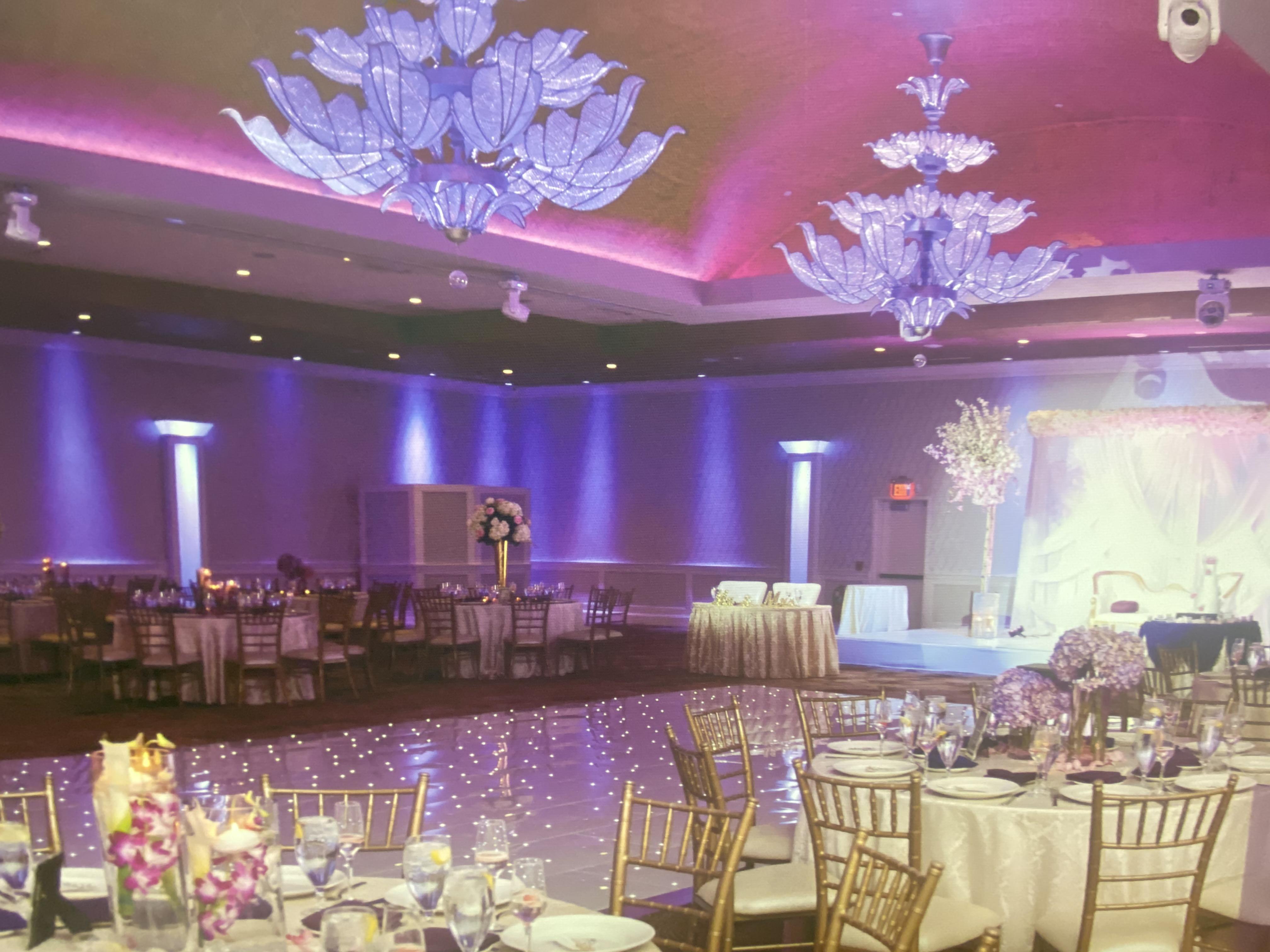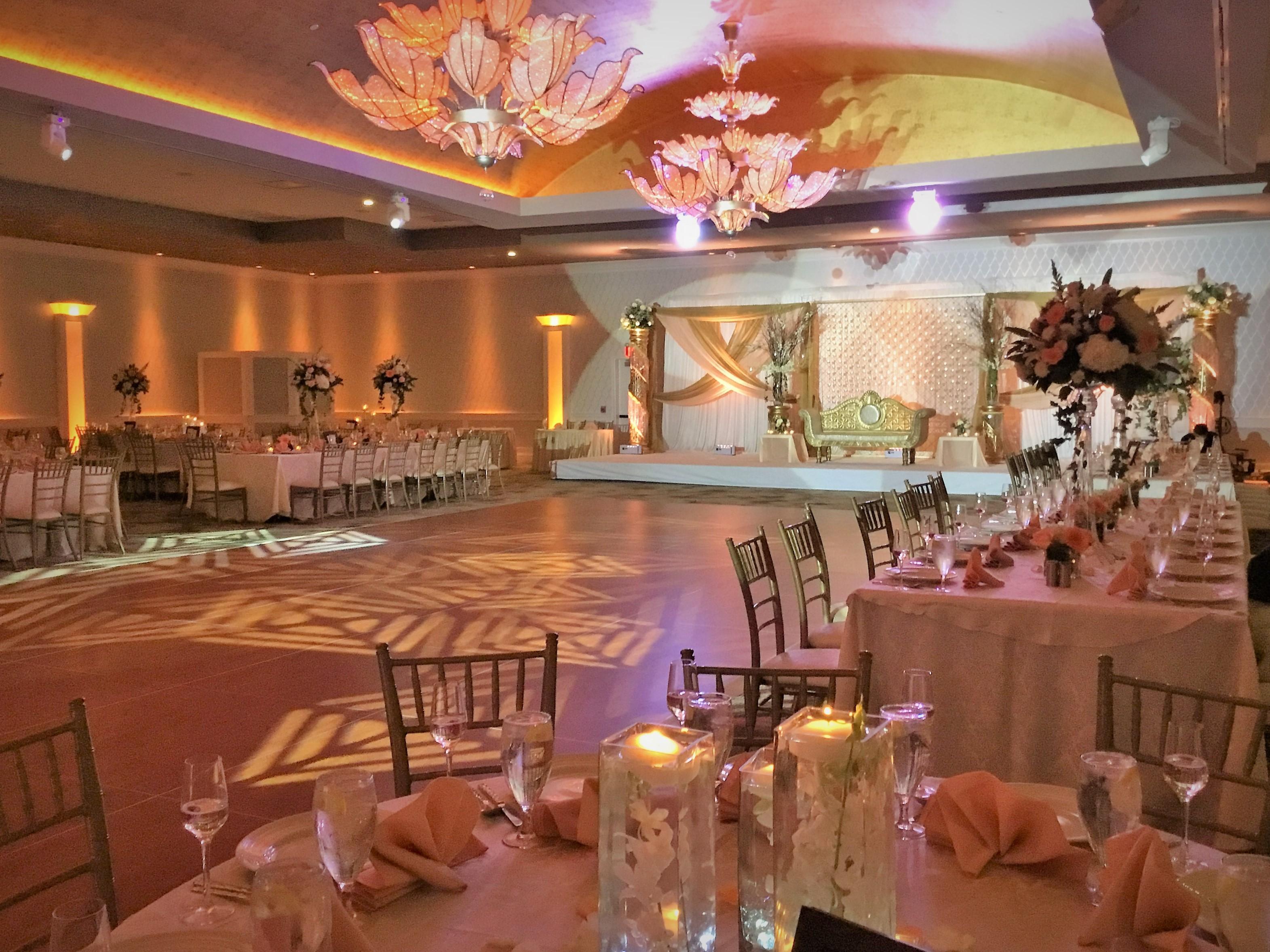 The Marigold Ballroom features three lotus flower crystal chandeliers, state of the art built in LED up-lighting, adaptive Intelligent lighting, French Windows and a spacious dance floor.