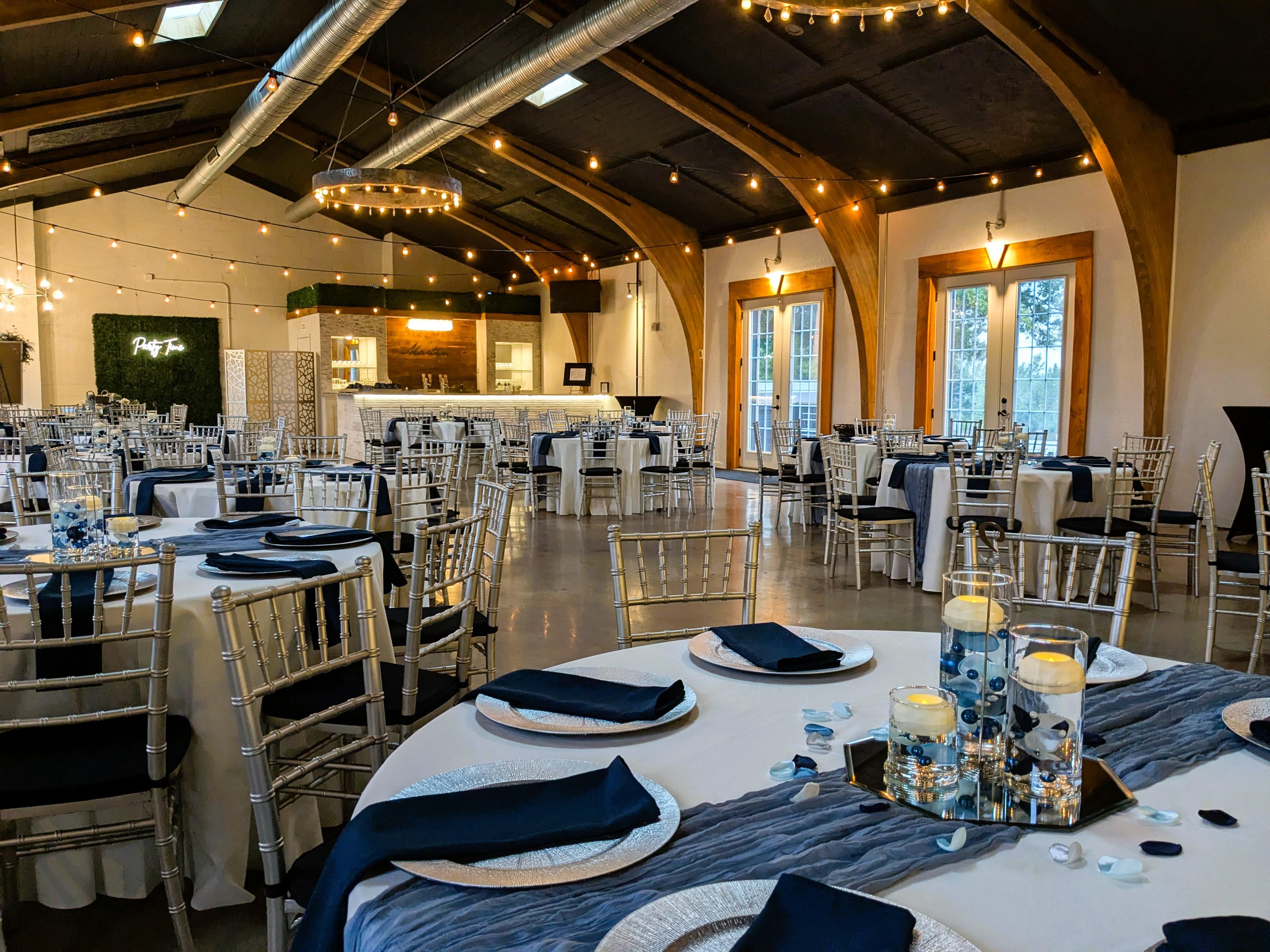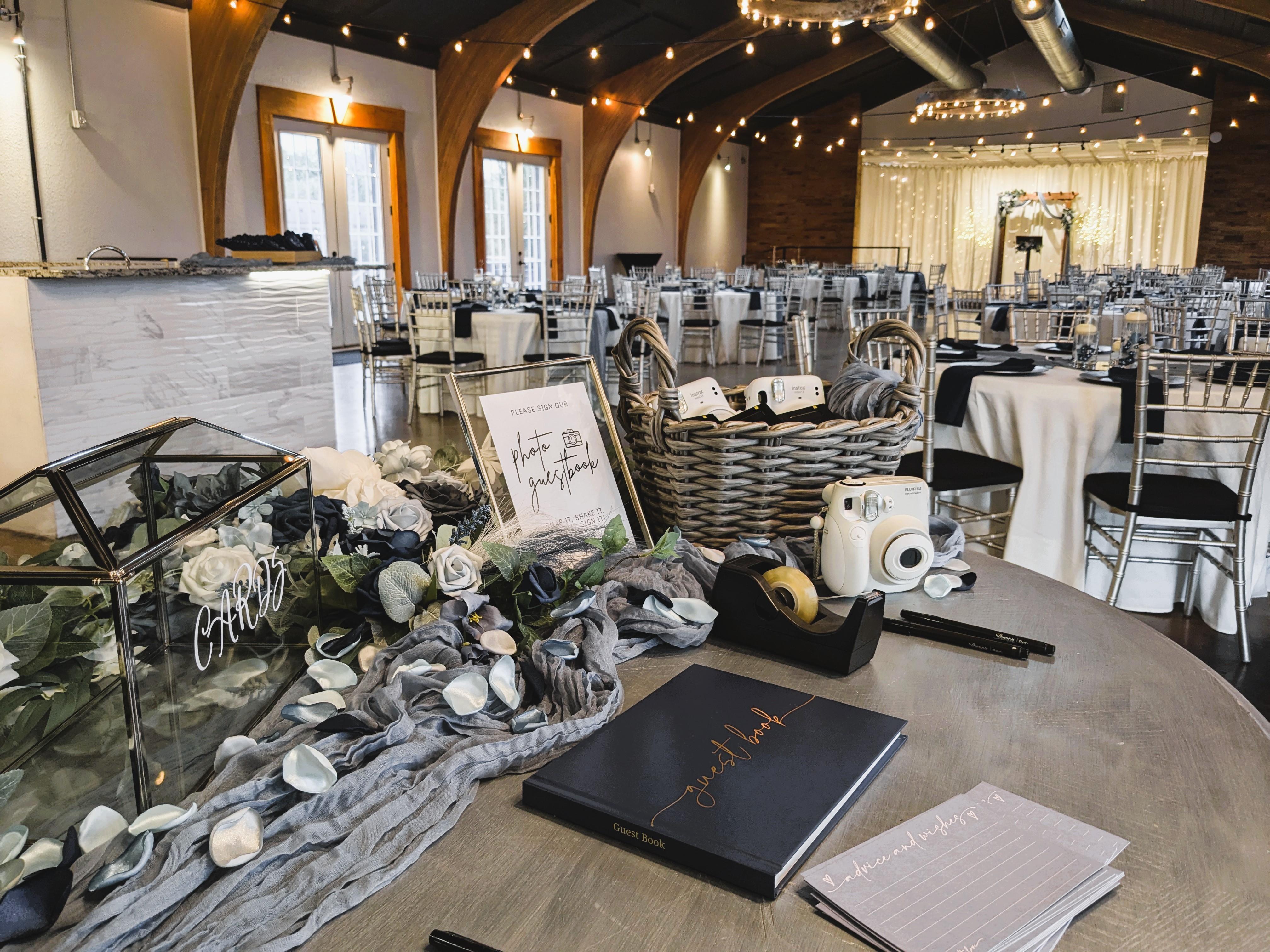 All wedding venue rentals include Tables, Chairs, Linens, Greenery Wall, Some Decorations, Two Bridal Suites, Coordinator, Set-Up & Teardown, One Hour Rehearsal, Private Courtyard with Firepit, In-House A/V System, Indoor Bar, TVs