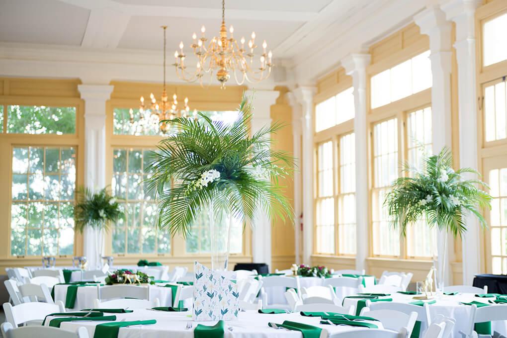 Large windows on all sides of the elegant, wrap-around porch overlook Druid Hill Park and the older tree areas of the Zoo. While the historic nature of the building adds a notable charm to the space, the individually controlled chandeliers allow for smooth transitions to set any mood, and the air-conditioning for a distinguished setting with modern comfort.