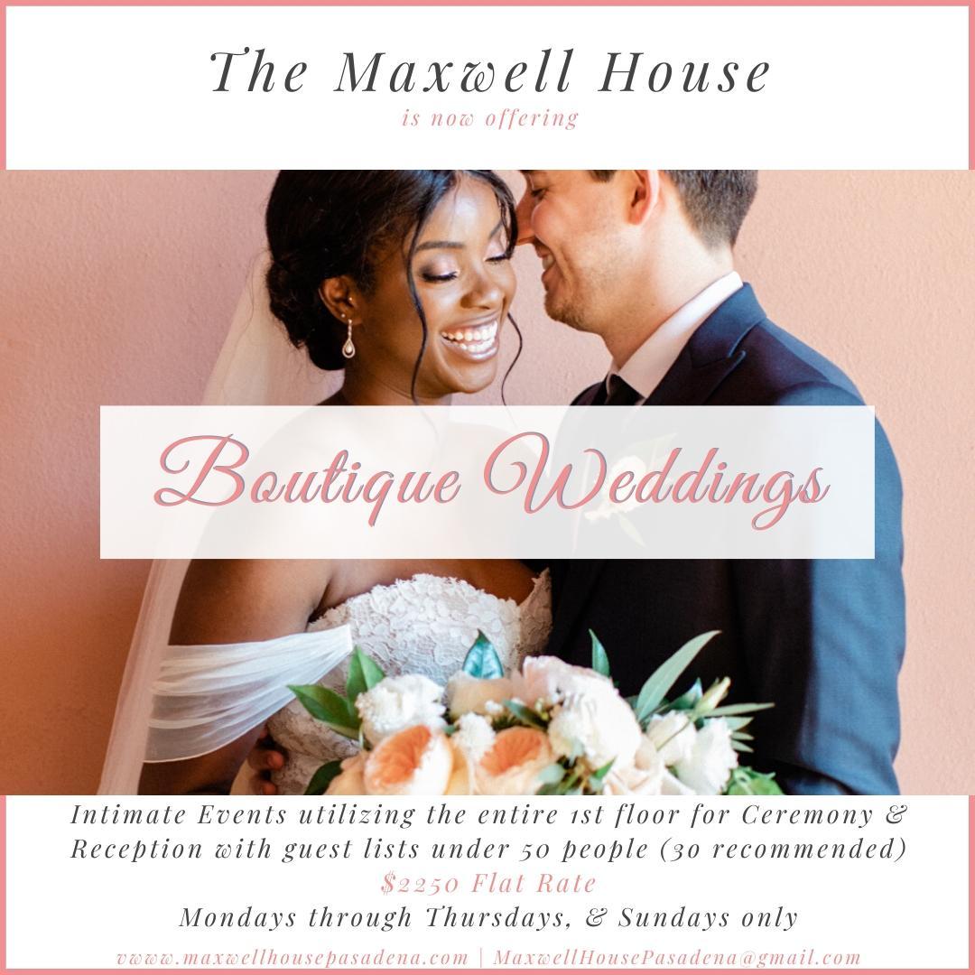 The Maxwell House is an Historic Landmark & Special Event Space located in the heart of Old-Town Pasadena. Full of unique, historic charm, it is a venue built for making memories! We offer a variety of wedding and special event packages, perfect for any of life’s celebrations! Event rentals include access to the entire first floor, including the main ballroom, grand staircase, sweeping foyer, large dining room, library, full kitchen, and two outdoor patios, in addition to the upstairs mezzanines and wedding suite. Included in our packages is the use of our inhouse equipment such as tables and chairs, artisan crafted wooden wedding arch, dance floor, sound system, bar, outdoor string lighting, complimentary parking, and more!