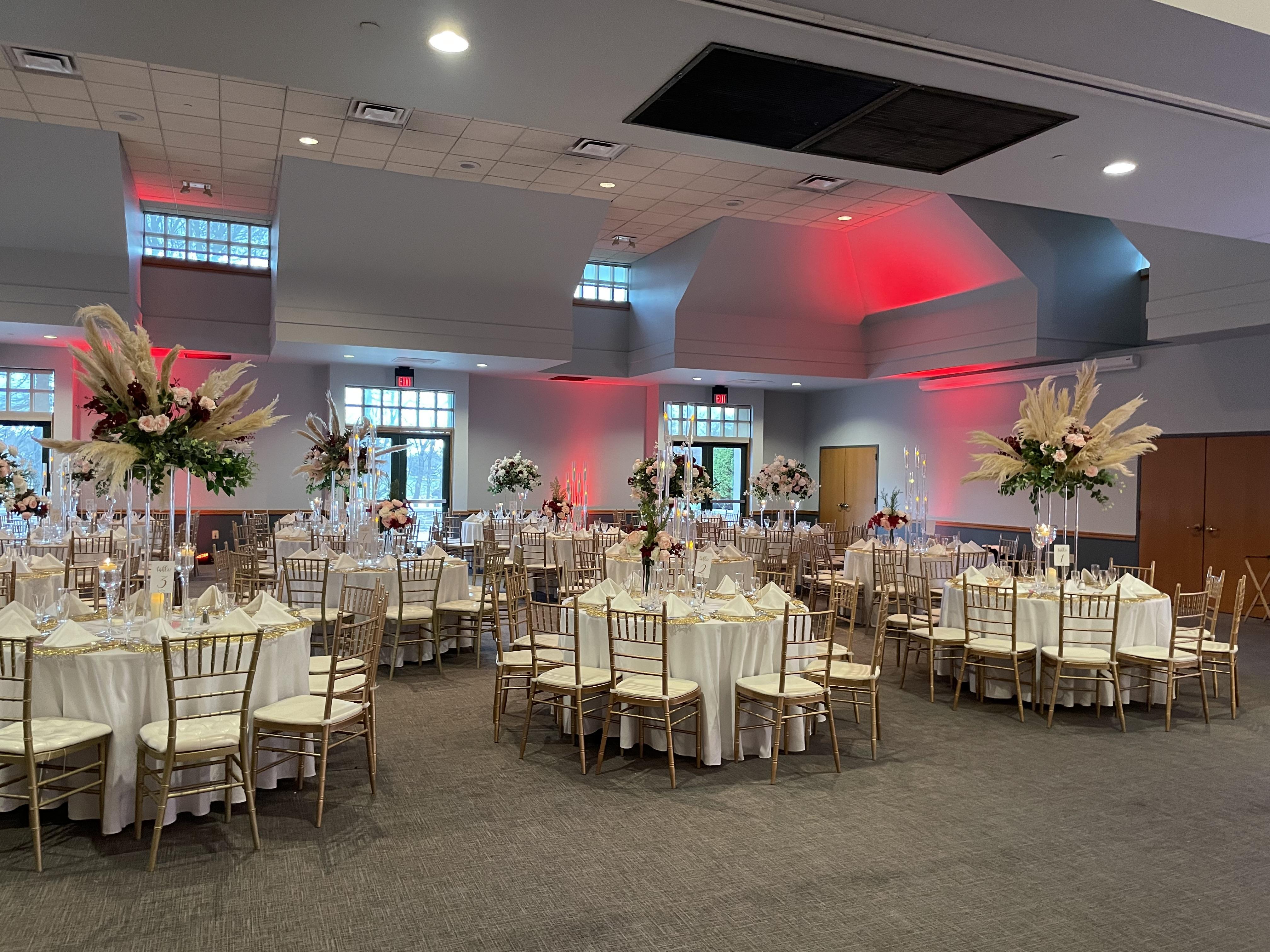 The Medallion Club is a classic country club and ballroom wedding venue located in Westerville, Ohio. Couples can choose to use any of the four event spaces, ranging from scenic indoor to uncovered outdoor areas. Use the main ballroom for your grand reception, able to hold up to 330 of your loved ones. This space sports a large dance floor, intimate lighting, and lovely views of the pristine course outside. The grounds have so many picturesque locations it’ll be hard not to take great photos!