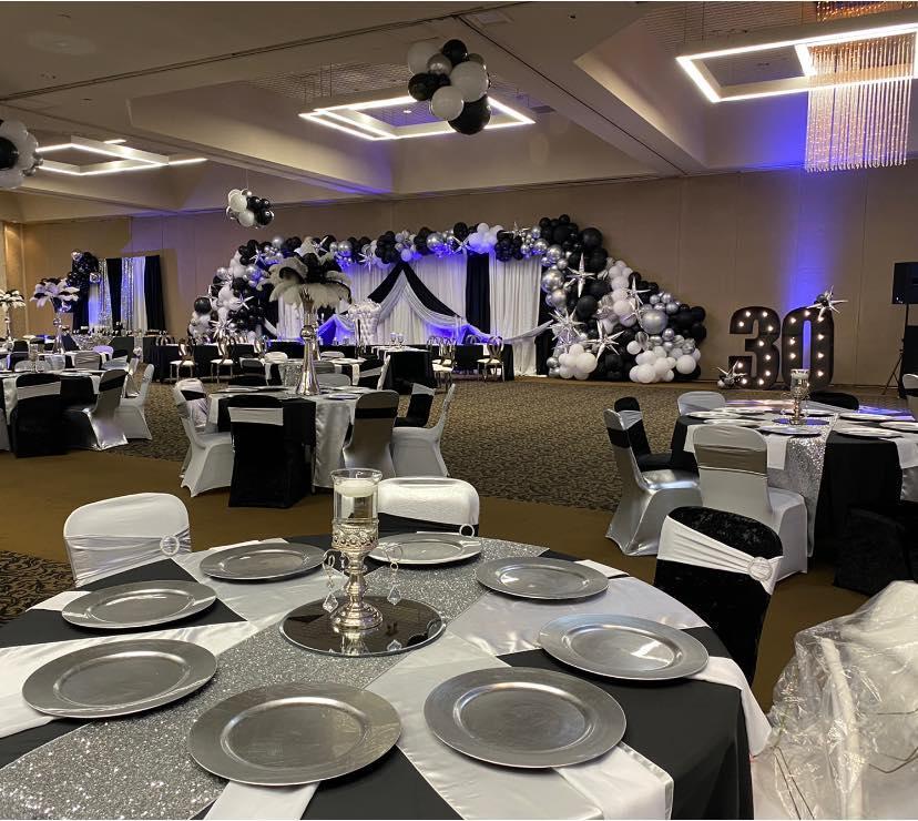 Dance floor & stage Tables & chairs White or black table covers & skirting Optional add on for full use of kitchen equipment & plating Use of food warmers, walk in cooler and ice machine Large bar Patrolled security Personnel on site 10 consecutive hours