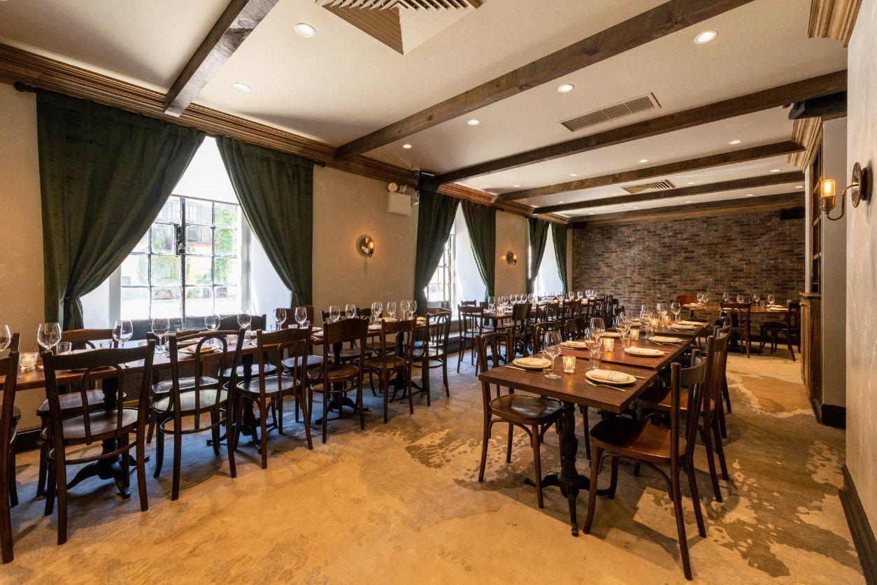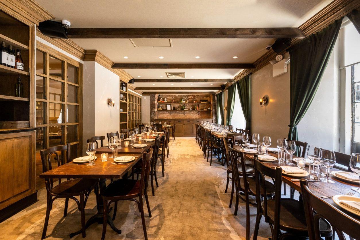 Our PRIVATE DINING ROOM can accommodate up to 50 guests seated or 70 guests for a standing cocktail style reception. The intimate space features exposed brick, original terrazzo floor, and rustic wood accents, and can be set with a portable screen & projector for presentations.
