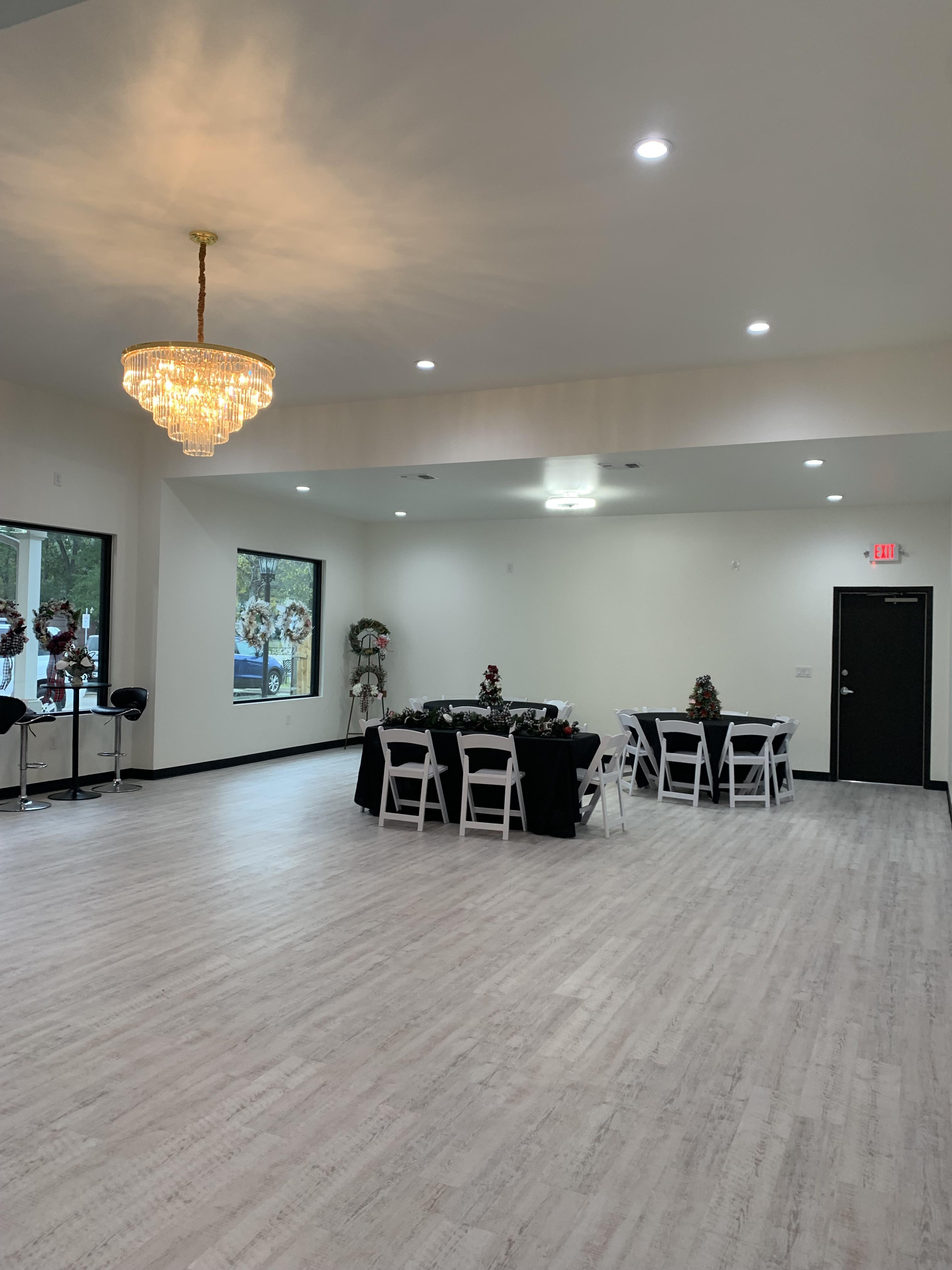 The Middleton venue is a brand new event venue that just finished building in September 2023. This cozy luxurious event center is also a historical replica of the Stewart and Wright drugstore that was once in old Katy! The Middleton venue is a cozy 1274 ft.² we do provide tables chairs for your event. Our Max occupancy is 85 people standing 65 seated. We have two wheelchair accessible bathrooms with baby changing stations in both and easy parking right next to the venue.