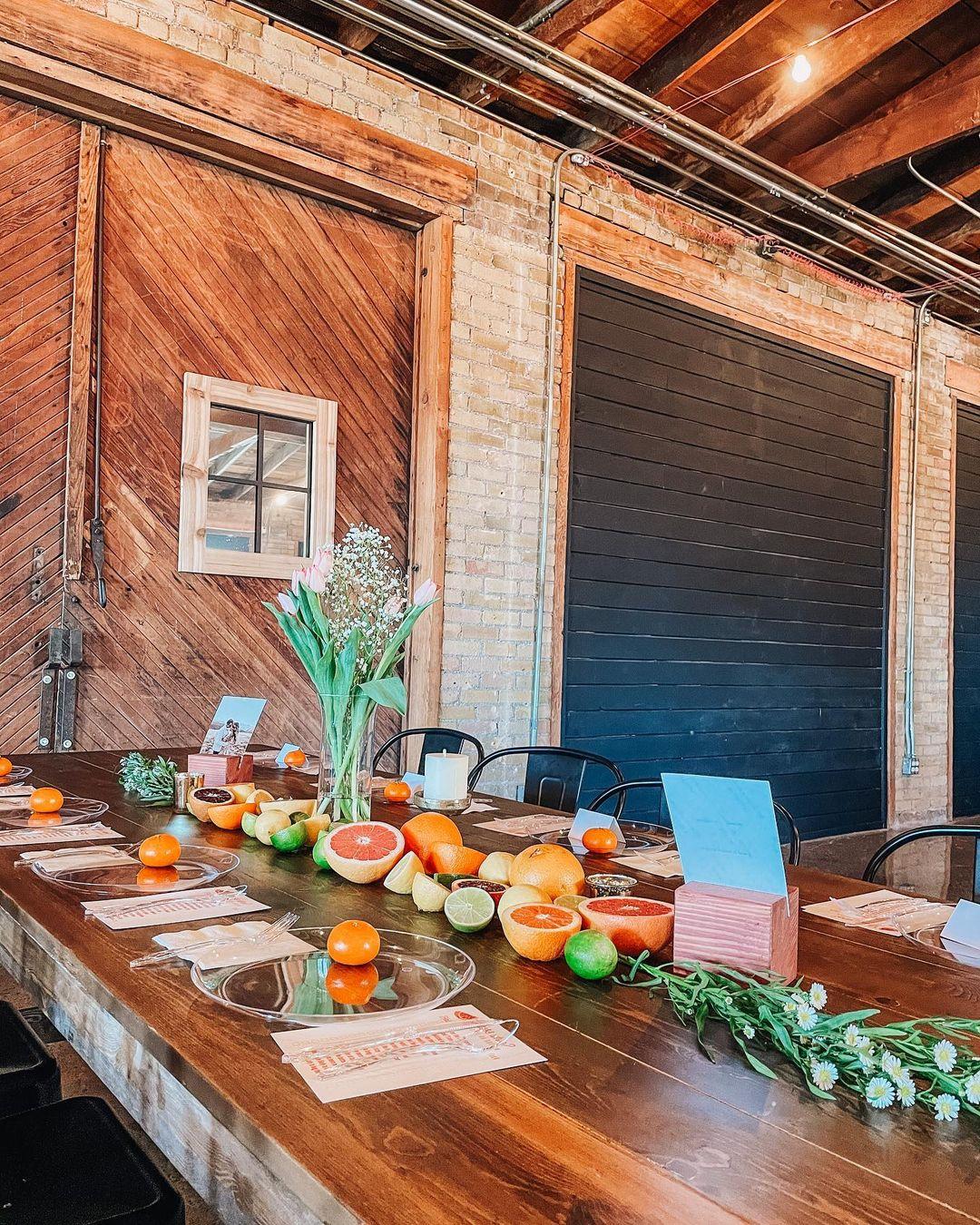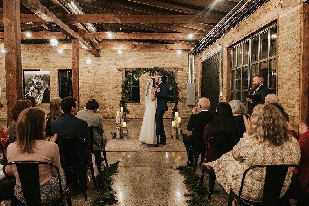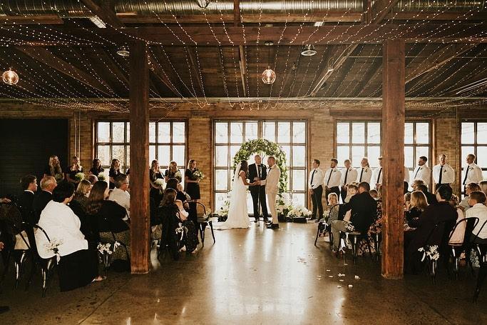 The Millhouse Venue’s main ballroom area boasts approximately 3000 square feet of space, ideal for couples that want a blank canvas to design their ceremony and reception. Guests will enter this event room through the custom double front door, which also makes for an eye-catching photo backdrop. The interior features the original brick from its original construction, with modern windows to cover celebrations in plenty of natural light. Couples and their guests can dine and mingle on the polished concrete floor, which adds an industrial-chic aesthetic to the space. Its exposed wooden beams and ceiling trusses can be easily decorated to match any theme you prefer. You and your wedding party can use the in-house dressing suite, which features large mirrors and plush lounge furniture for you to prepare in luxury. Your caterers can use the in-house kitchen and prep area to ensure your favorite dishes are ready to enjoy.