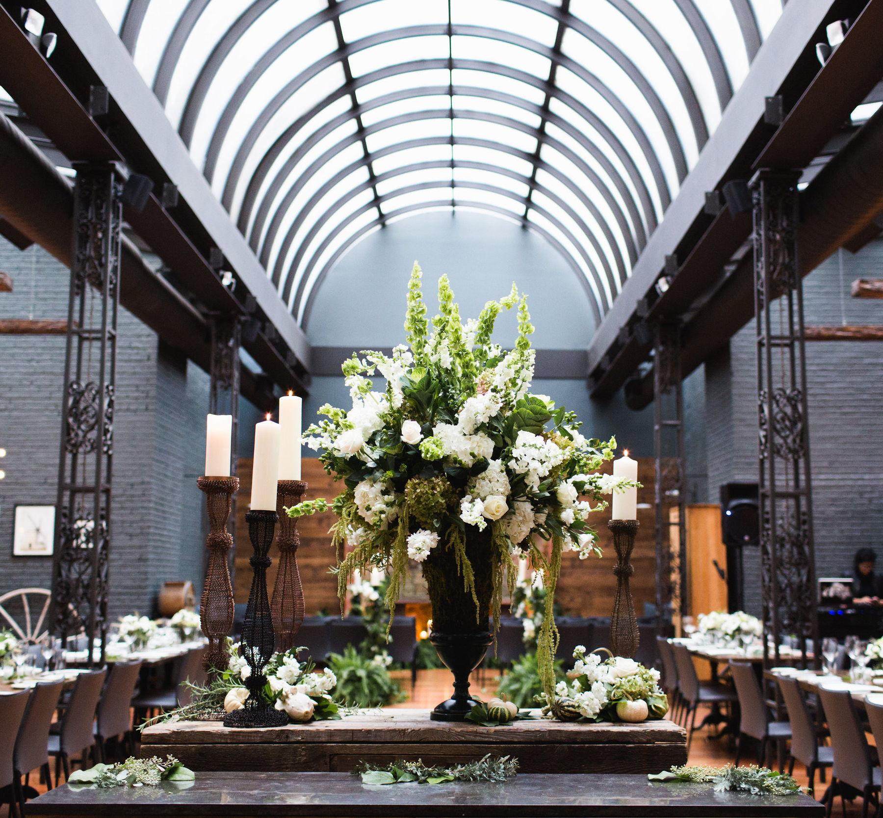 Our Main Dining Room is ideal for any and all grand events. Featuring modern exposed bulb chandeliers, historic iron columns, an exposed brick fireplace, beautiful hardwood floors, and 25-foot sky-lit ceilings, it's our largest space. Versatile and spacious, our Main Dining Room offers intimacy tucked away at the back of the restaurant. Yet, while being bathed in natural light, it offers you and your guests an expansive and airy atmosphere.