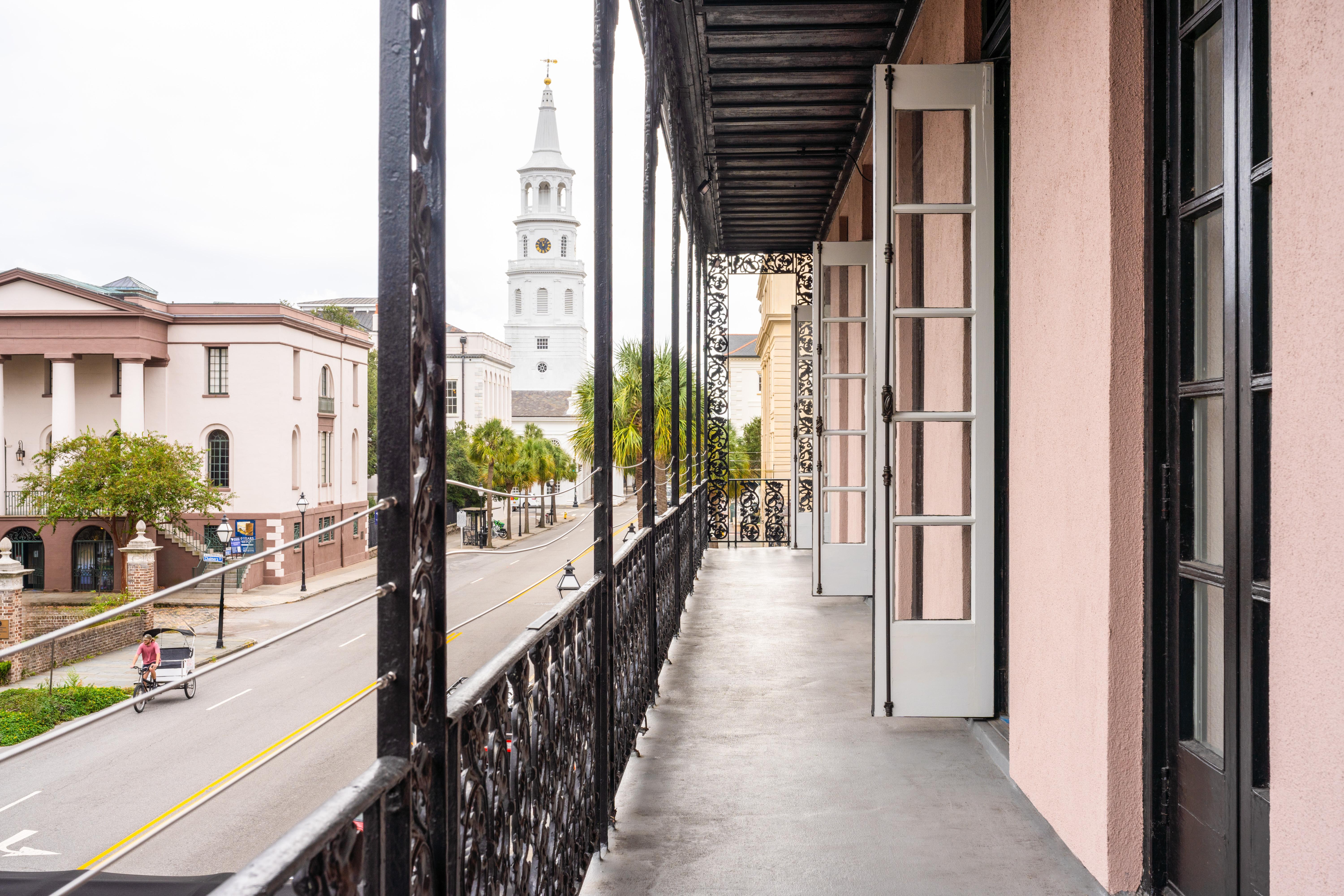 An elegant room for intimate celebrations with close friends and family with an iconic 1853 wrought iron balcony overlooking Meeting Street.