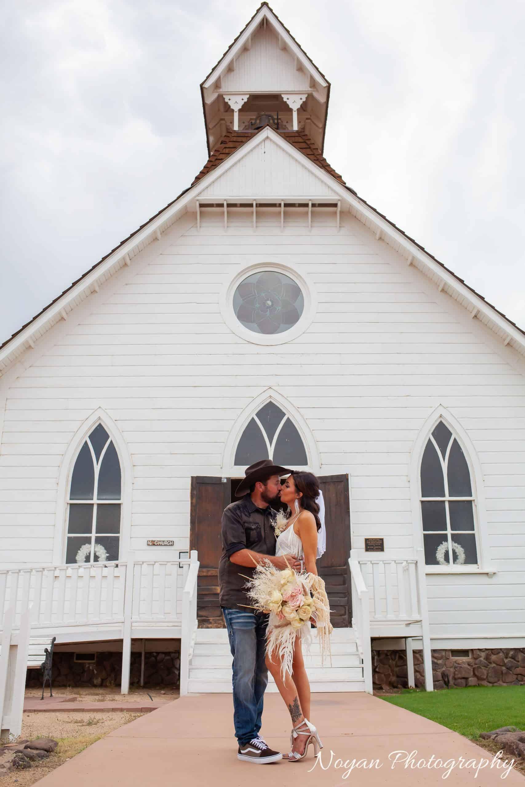 Looking for an affordable, All-Inclusive Venue for your Elopement, or Micro-Style Wedding, at an historic Church-Chapel, or, a beautiful outdoor Gazebo, (October through April), then the Mission Chapel at Pioneer Village in North Phoenix, Arizona may be for you. We welcome all faiths, genders, ages and can provide traditional, themed, and non-denominational services for up to 50 people. Our All-Inclusive Packages include Venue, Bridal Suite, Decorations, Music, Coordinator, Minister-Officiant, Marriage License Registration, and optional In-House Photographer. And, if you so desire, we will Live Stream your wedding at no additional charge so, family, friends, or loved ones who can't attend physically, can attend virtually. When it comes to saving money, budget minded couples should consider an affordable, Micro-Elopement Style Wedding. Formal weddings can be an absolute nightmare, both to plan and to recover from financially. "