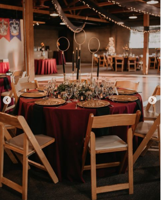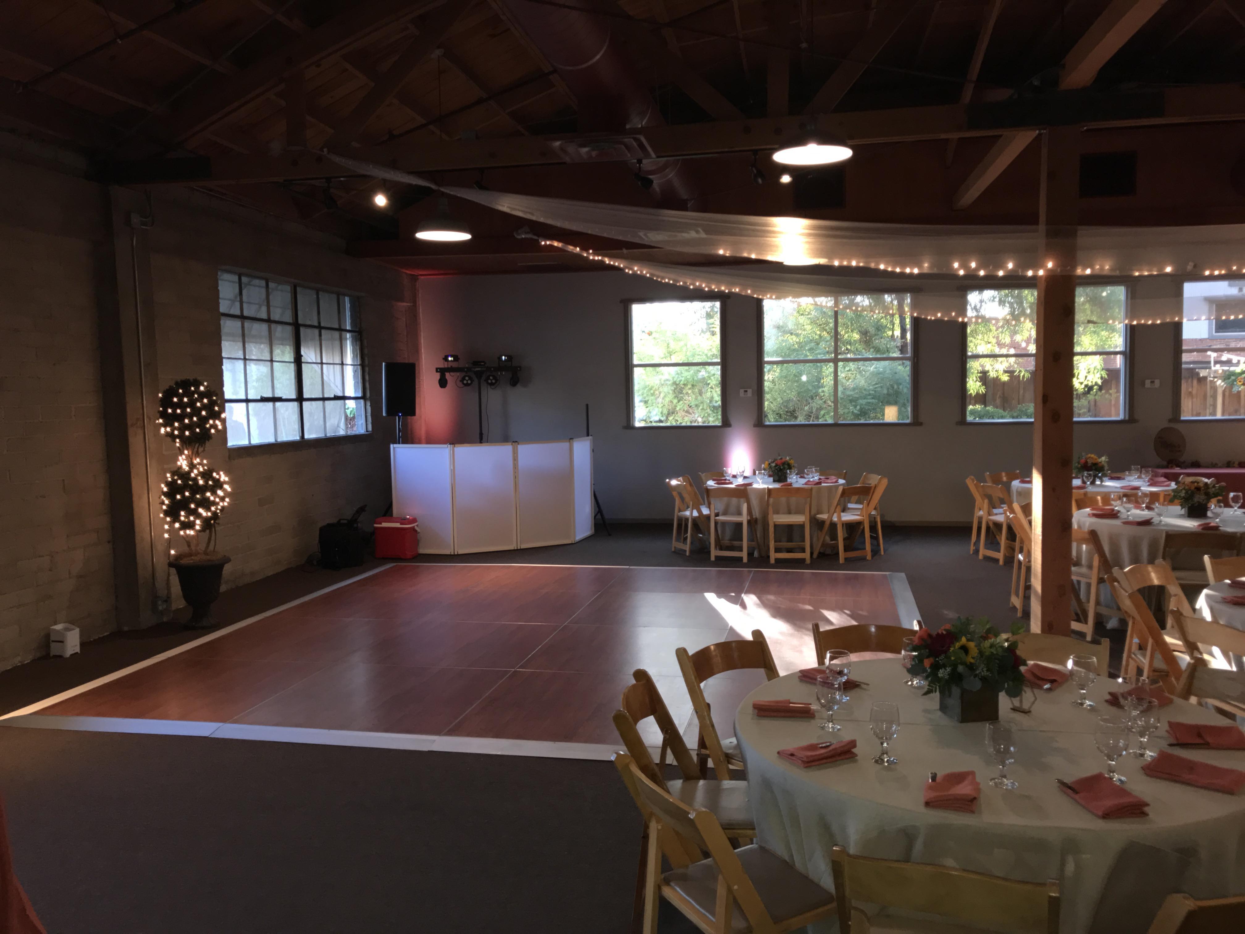 Building rental includes setup of tables, chairs, linens, with catering options and bar services on site all in one location. This creates an easy and stress free environment on your special day!