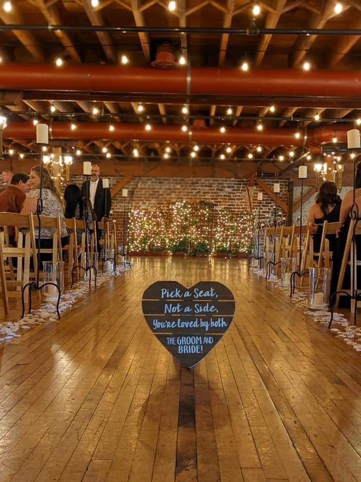 The multilevel interior encourages guests to explore and mingle. The Main Level serves as a welcoming reception area, with wrought-iron chandeliers and twinkle lights creating a festive atmosphere. The Mezzanine, featuring beautiful narrow-slat maple flooring, is perfect for ceremonies before heading downstairs to celebrate and dance the night away. The cozy Speakeasy Bar also serves as a pre-ceremony retreat or a charming spot for cocktail hour!