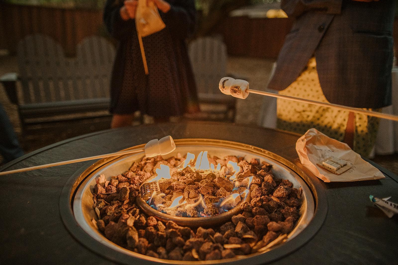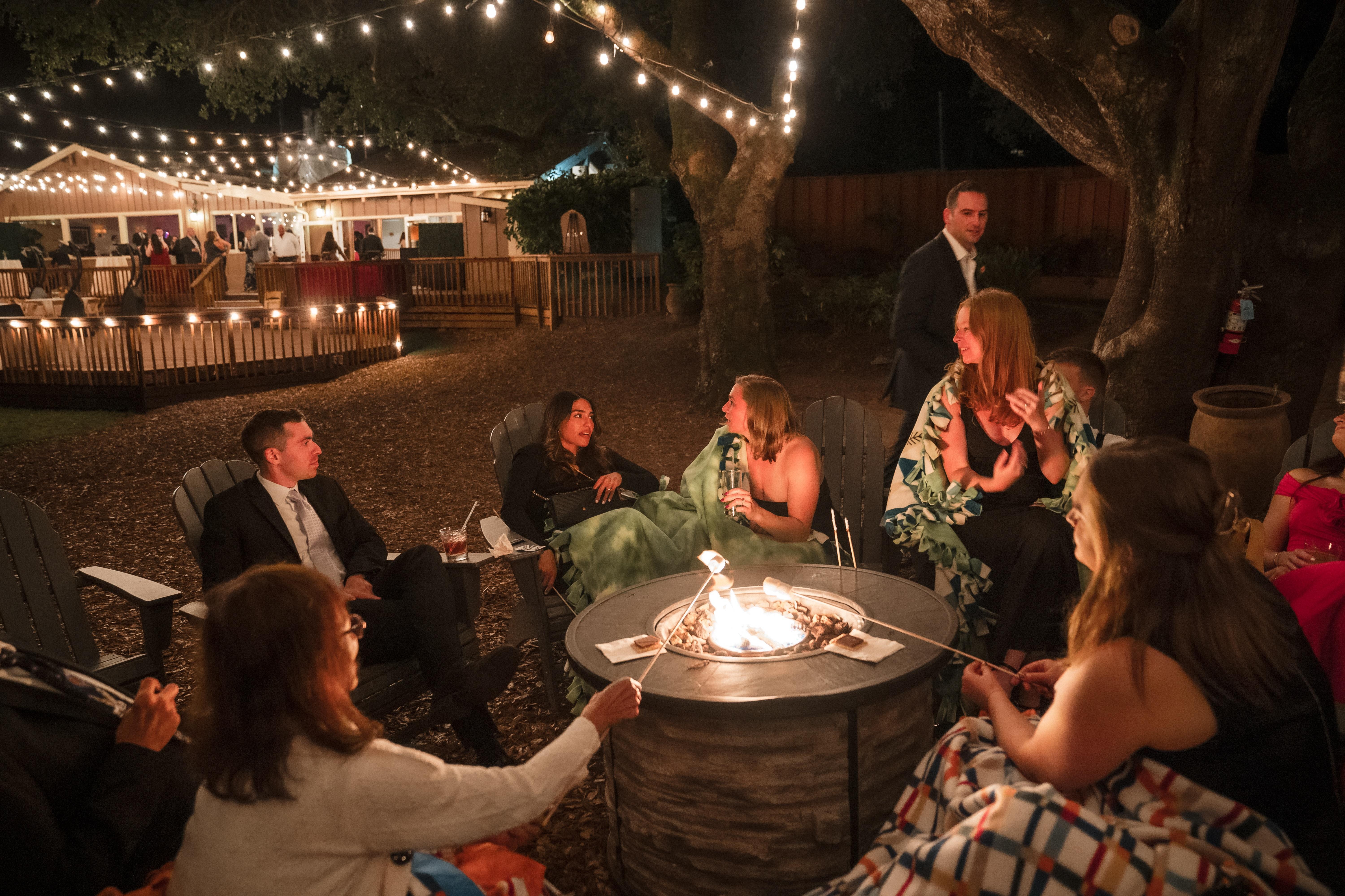 Our cozy fire pit with Adirondack chairs nestled beneath mature oak trees offers a quieter area adjacent to the decks and lawn for cocktail hour or after dinner relaxation. S'mores welcome and encouraged!