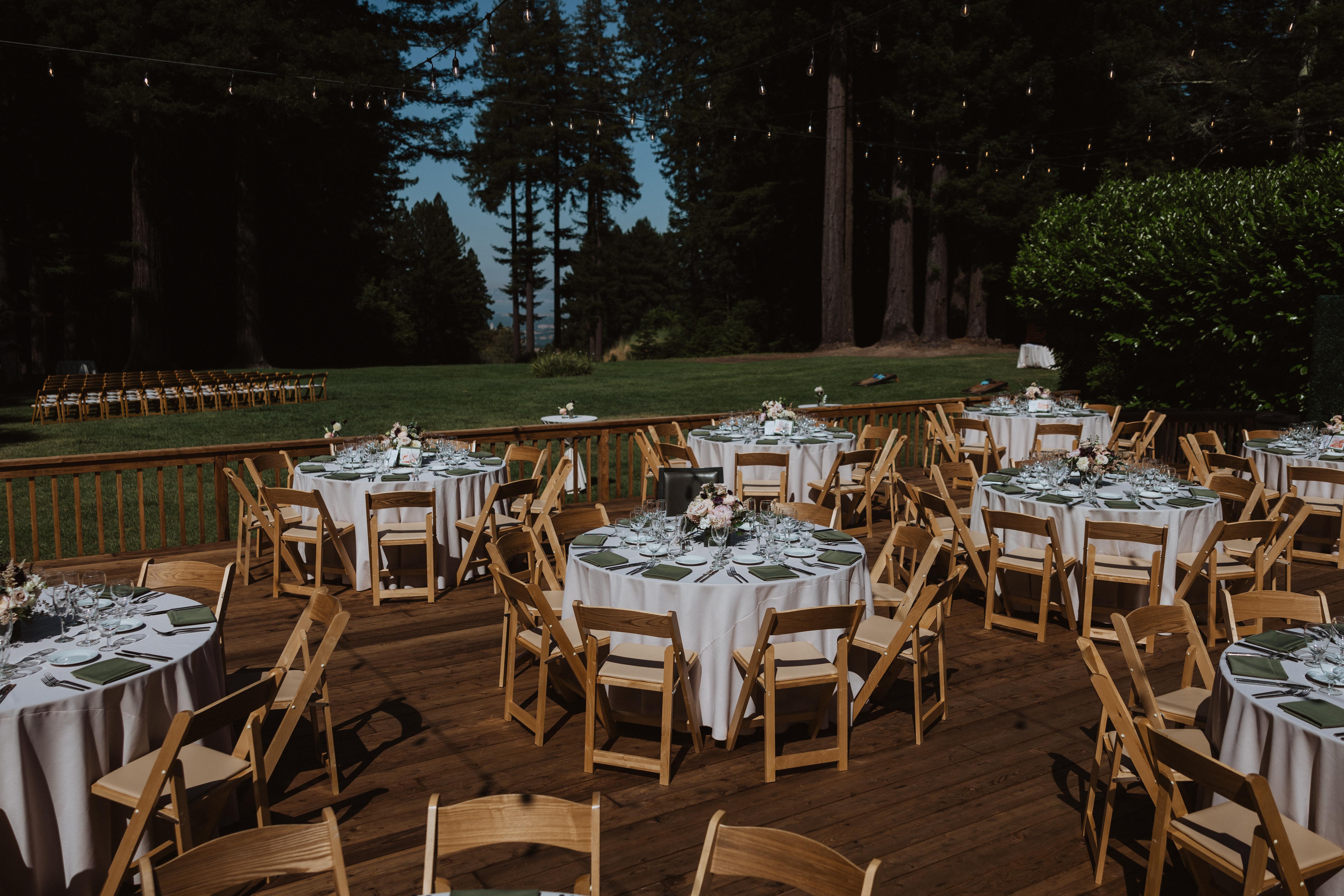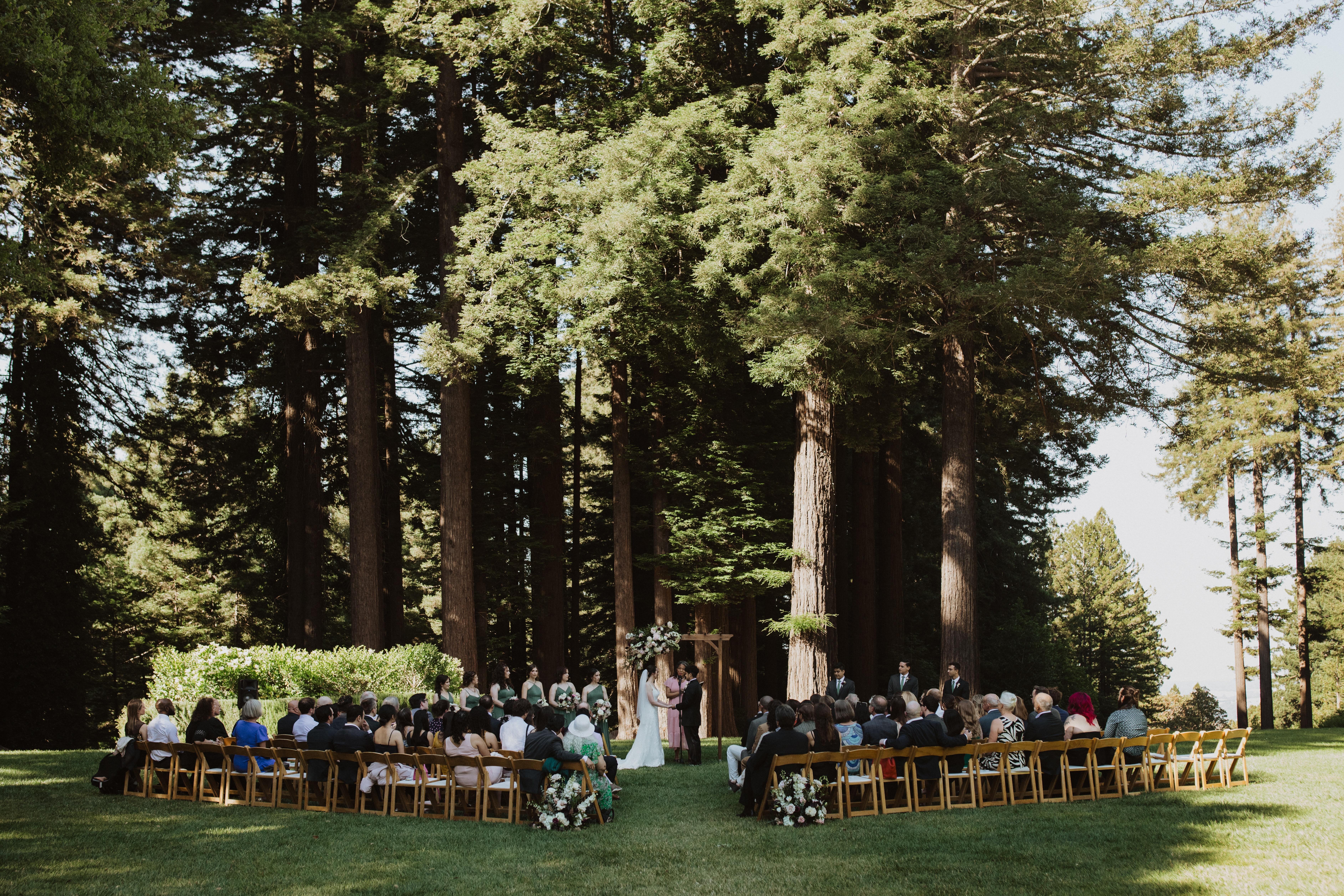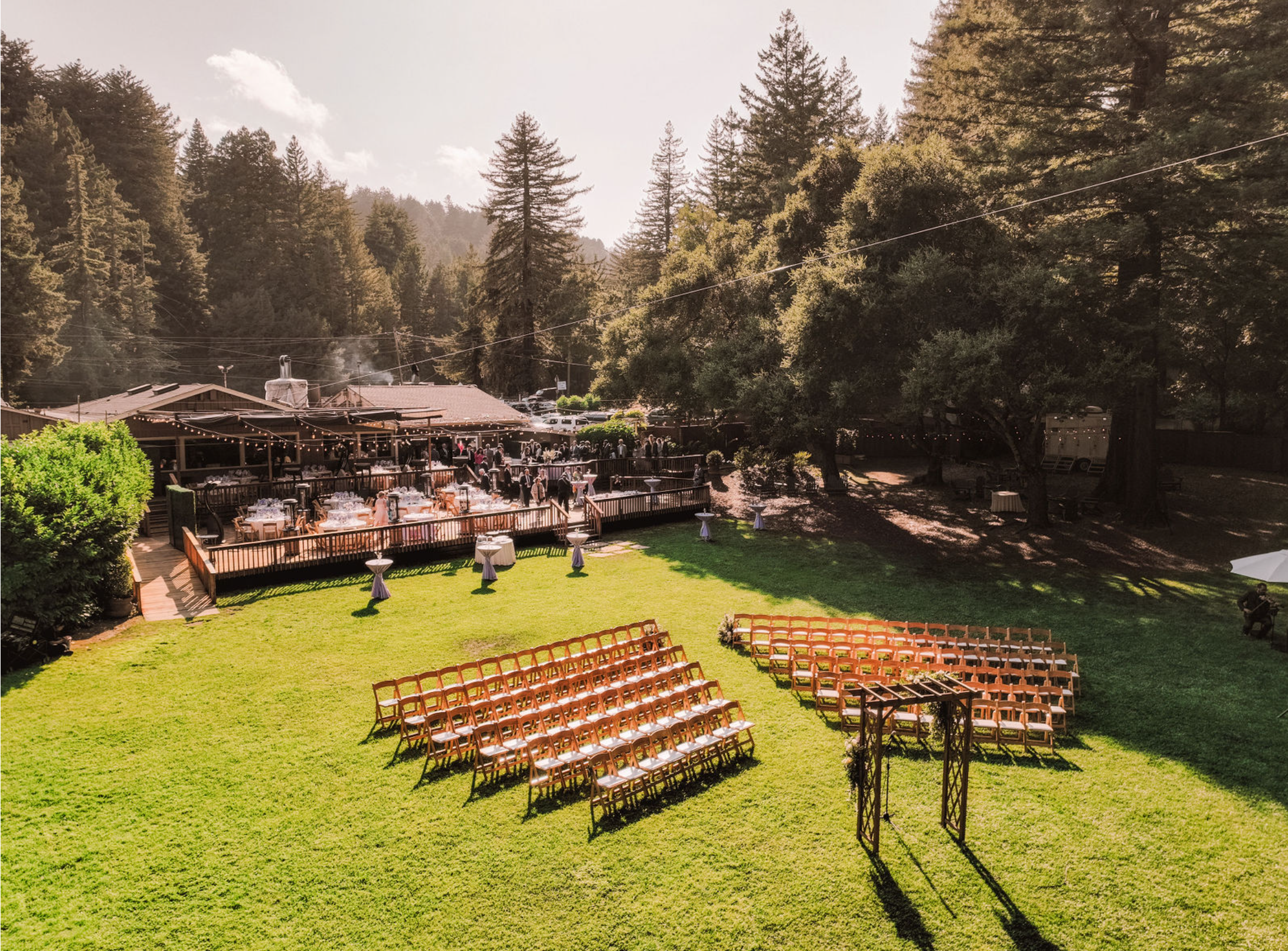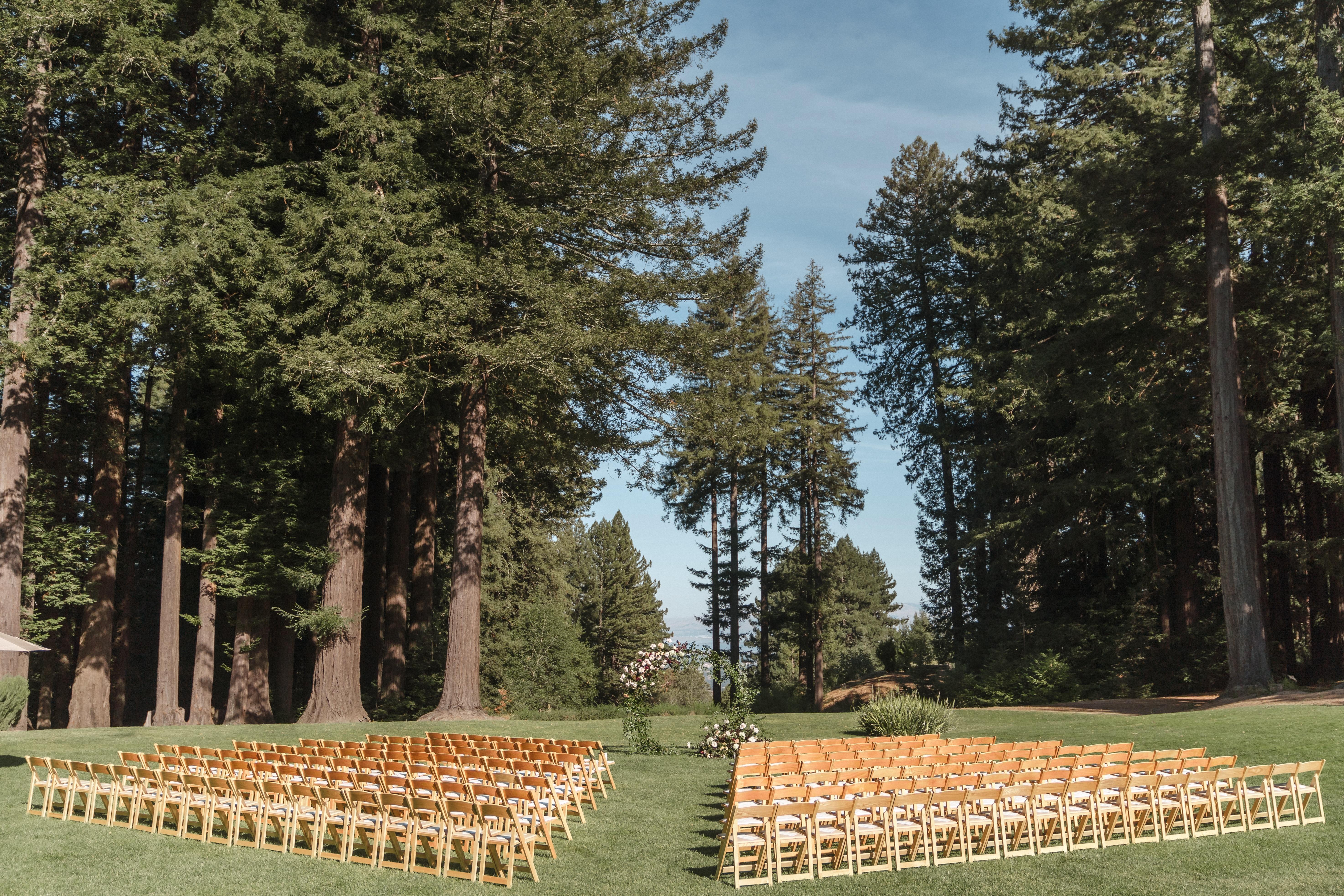 Experience your wedding ceremony in the grassy meadow of The Mountain Terrace, with bay views peeking through a mature redwood grove. Following your ceremony, guests can mingle while enjoying cocktails and hors d'oeuvres, play lawn games and explore the property.