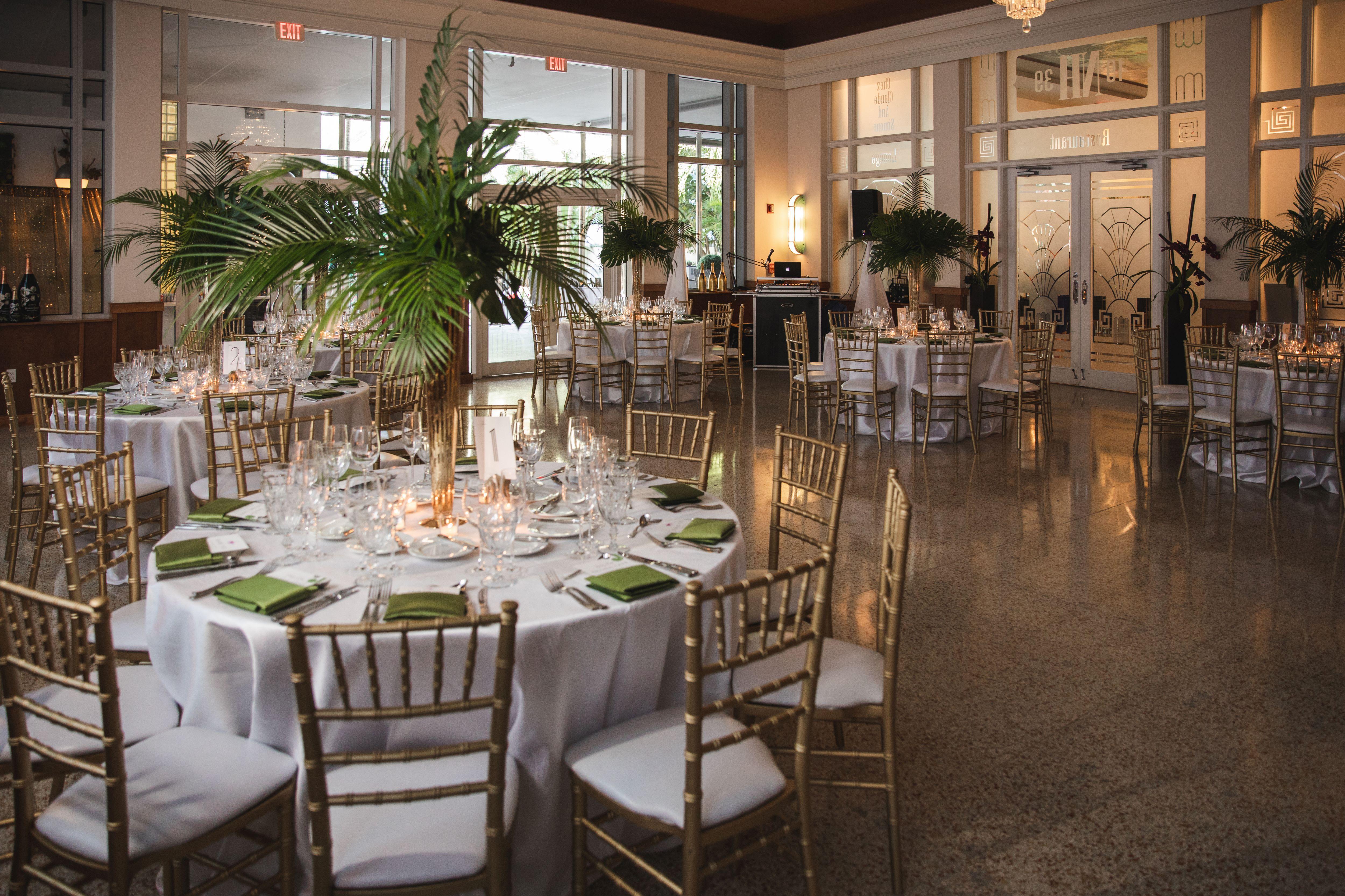 The Oval Room, exudes the grandeur of the Art Deco period with etched glass windows, deco wall sconces and antique bookcases, all carefully restored originals. Doors open onto the Poolside Terrace overlooking the lush tropical gardens and pool.