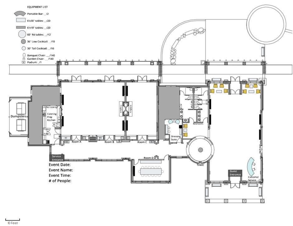 The venue will provide just the space. You’ll bring in your own caterer and vendors.