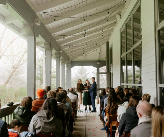 Located behind the Education Center building, this picturesque venue offers breathtaking panoramic views of the Bent Creek Watershed, making it an ideal setting for a wedding.
