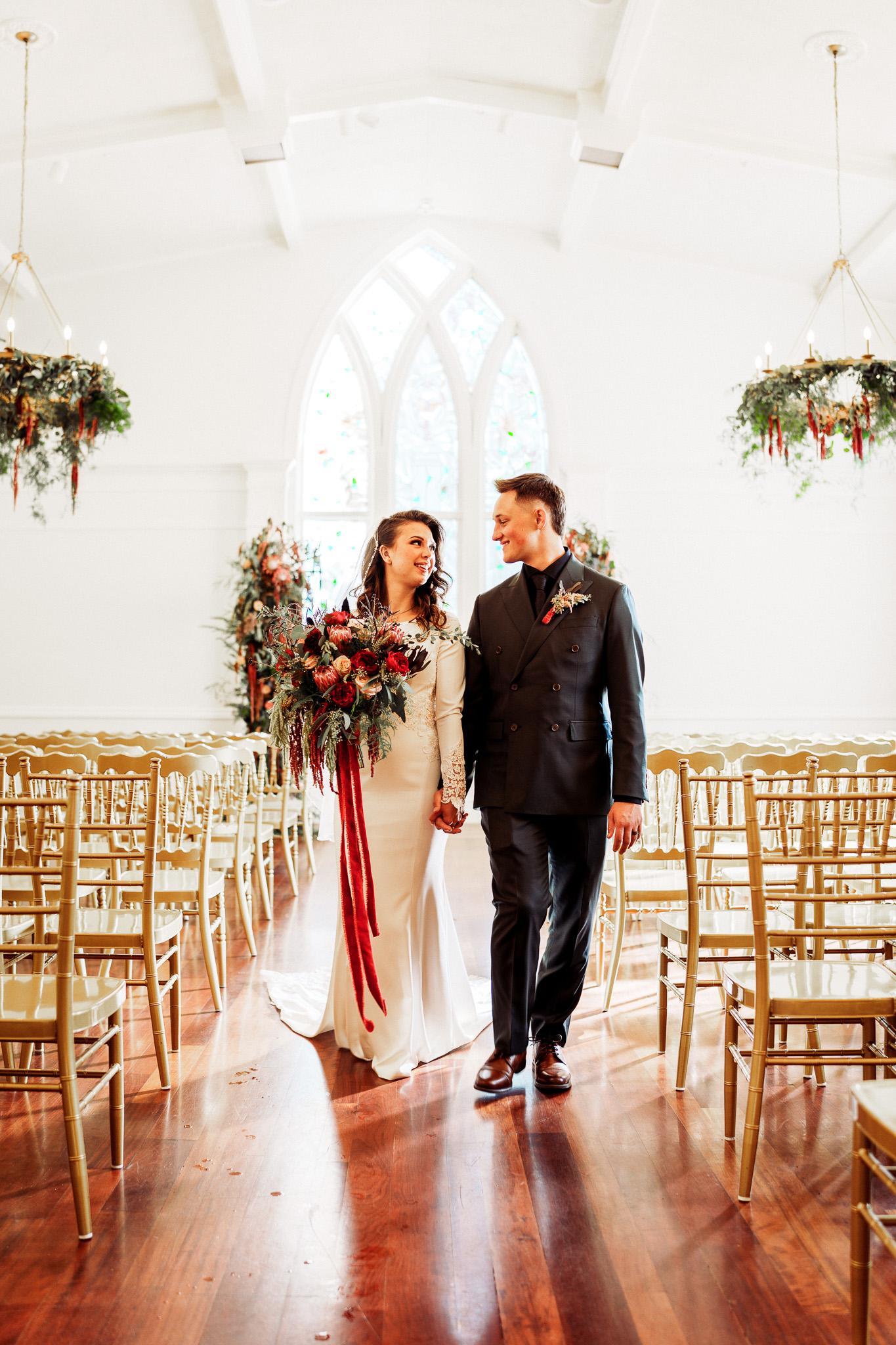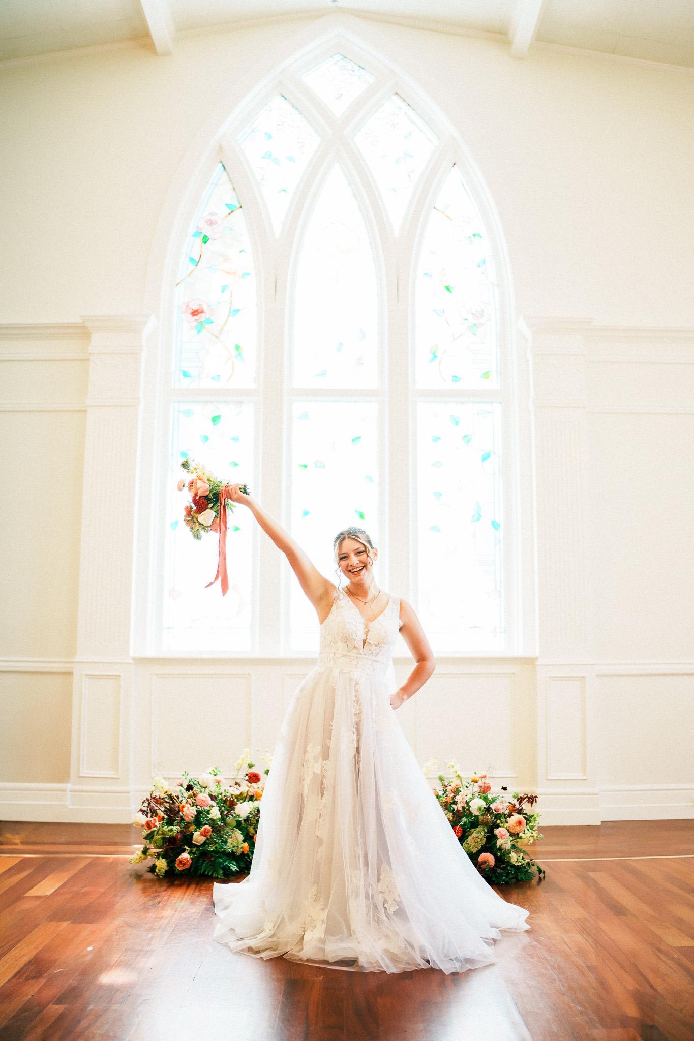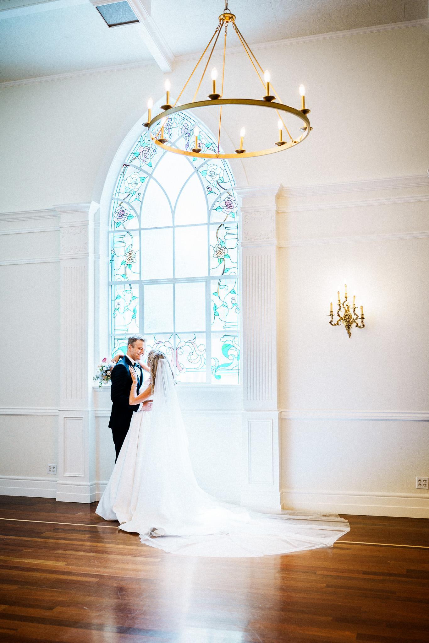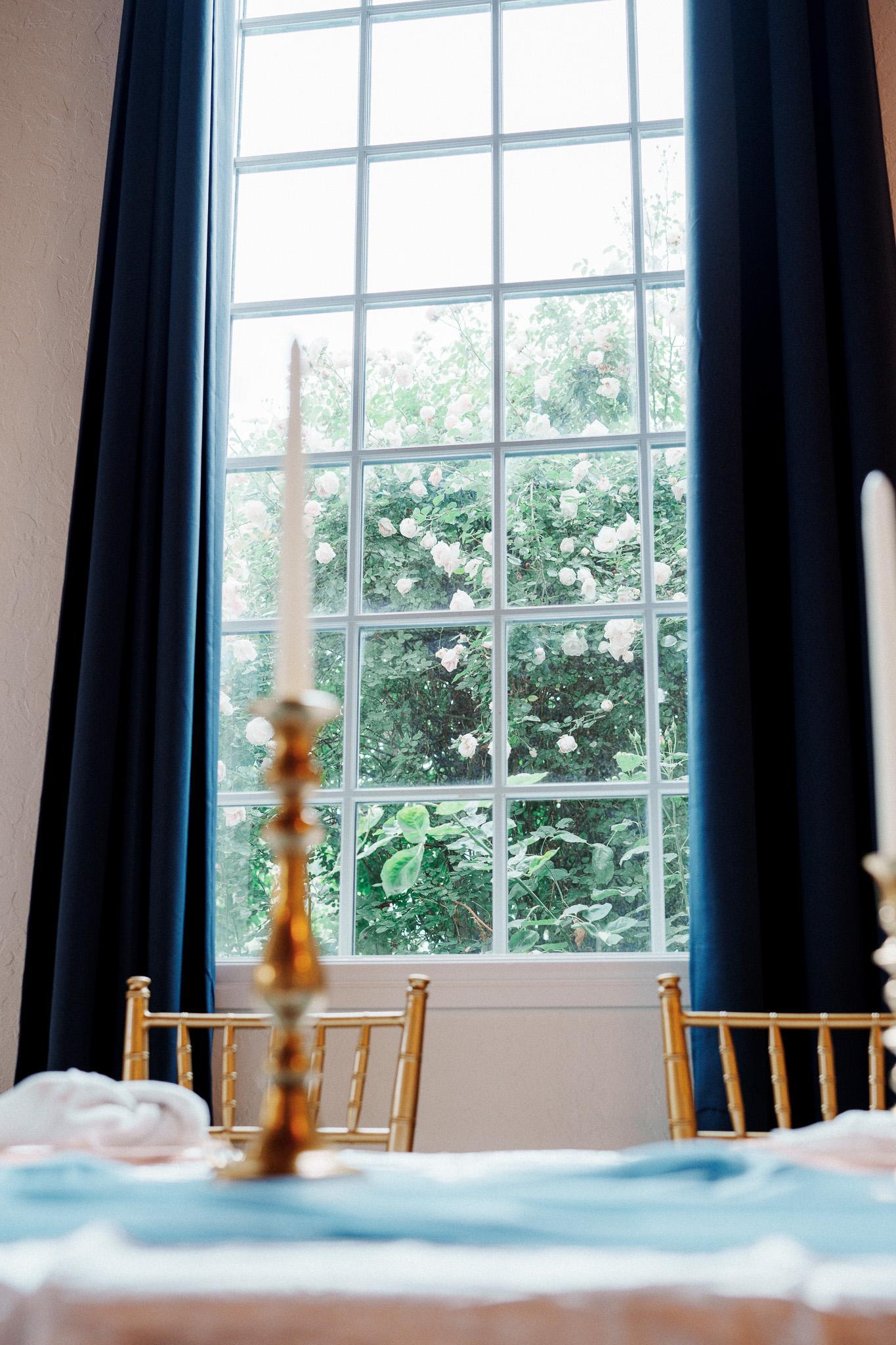 The Monarch revolves around grand stained glass windows of ivy and blush roses, ushering in a glowing sense of light and love to any experience. Vintage sconces line the walls and the tall ceilings create a luxurious atmosphere. A dual-sided mahogany staircase spills into the room allowing for a magical entrance, with a grand piano at its base. The Monarch is the perfect space for any ceremonies, gatherings, and other festivities.