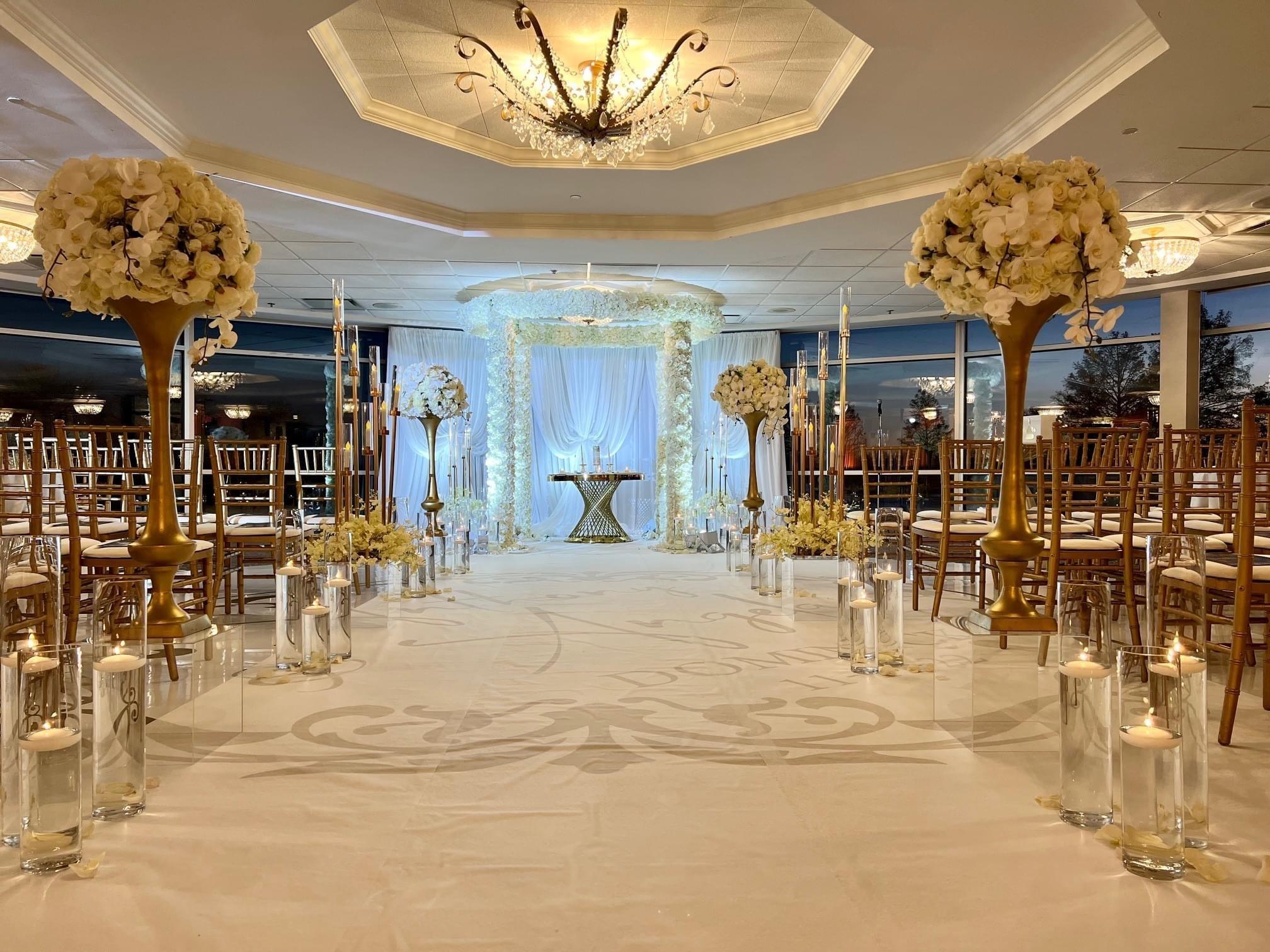 Nestled on a picturesque 18-hole golf course, our venue offers an unforgettable setting for any occasion. Step into our grand ballrooms adorned with sparkling crystal chandeliers, gleaming marble dance floors, and refined décor that exudes timeless elegance. The Terrace Ballroom provides stunning views of the lush greens, while our outdoor gazebos—surrounded by manicured gardens and tranquil lakes—create a romantic backdrop for ceremonies and celebrations alike.