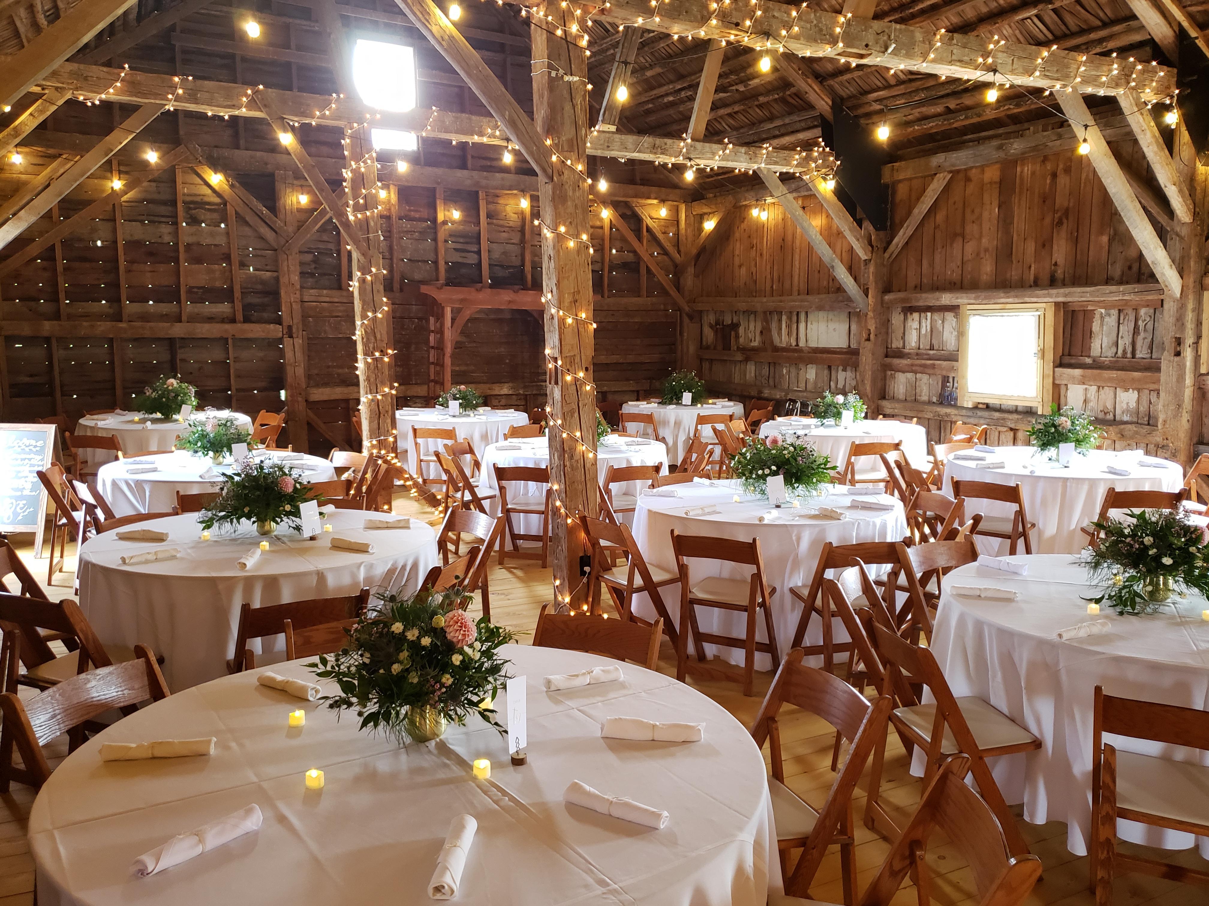 Your dream wedding will become a magical reality at the Old Scott Barn. Our historic post and beam barn has two large levels. The main event space is the upstairs hayloft which can comfortably seat 150+ guests with a generous dance floor.