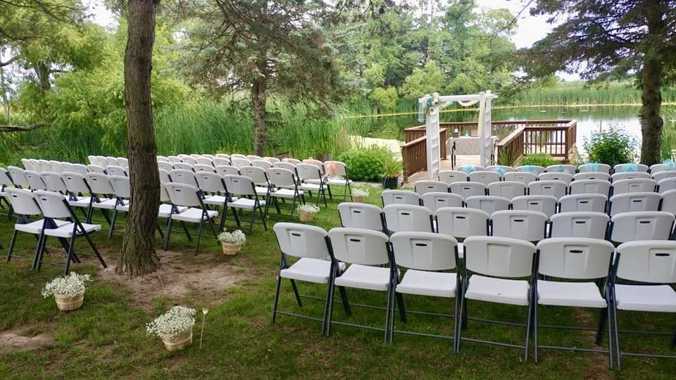 -Electricity at the ceremony location -White Wedding Arbor can be brought to ceremony location: on the dock, the edge of the dock, or no arbor -Chair set up