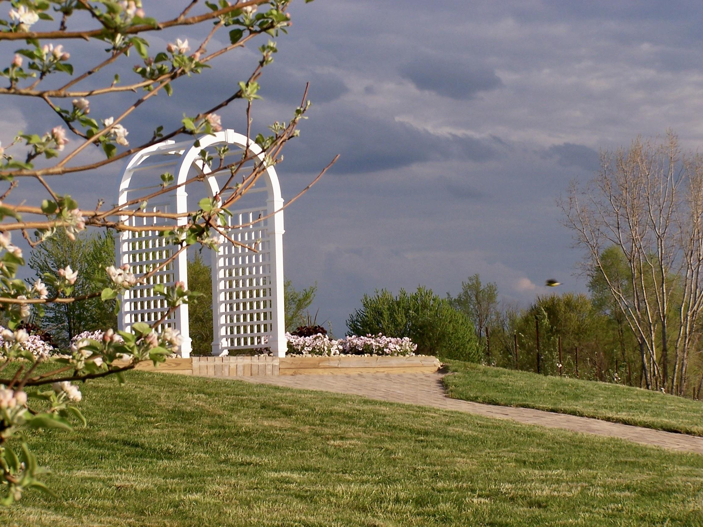 -Electricity at the ceremony location -White Wedding Arbor -Ceremony set up -Transportation of guests that need extra assistance -Seasonal potted flowers decorate the ceremony location