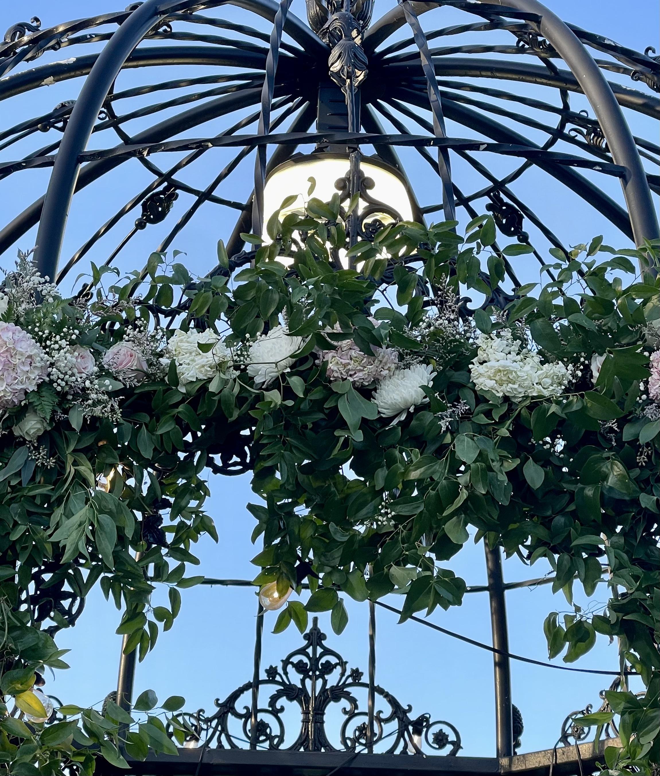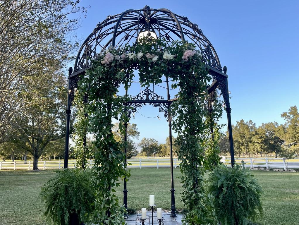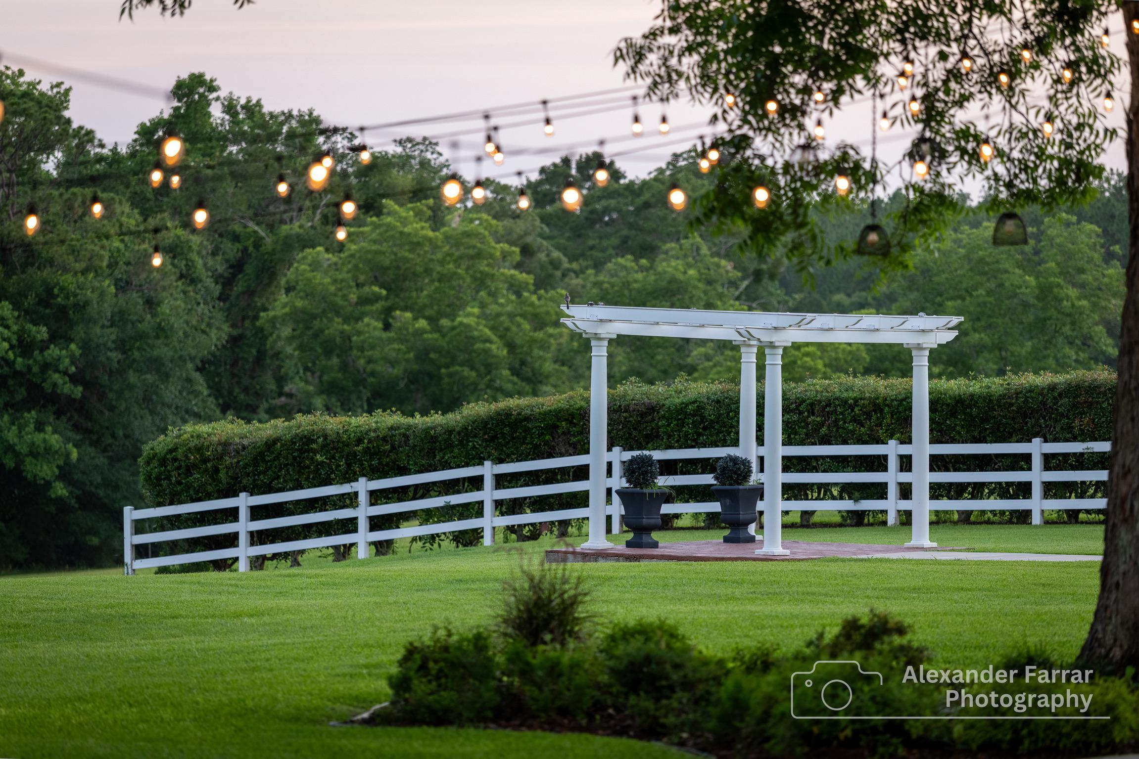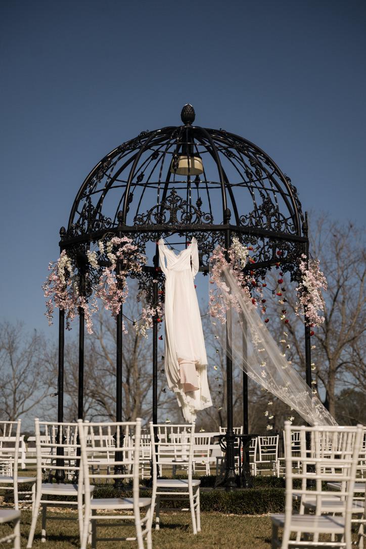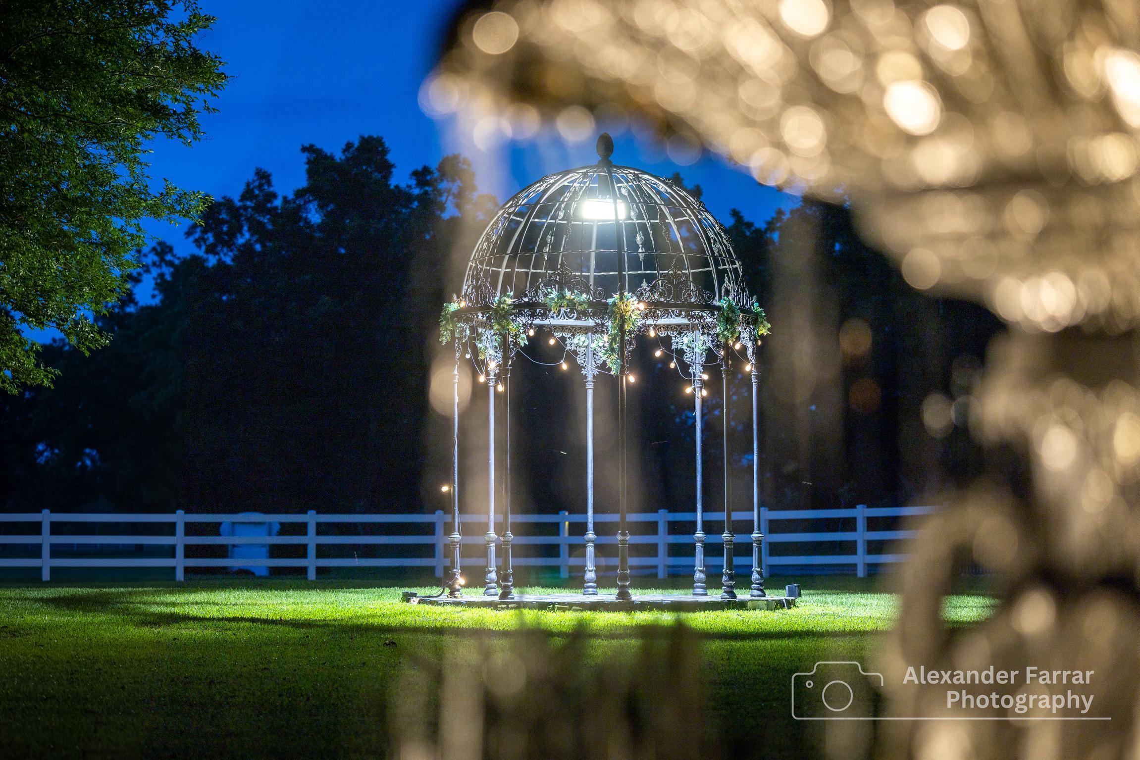 As the last echoes of music from your reception soften, the world quiets down just for you. Your guests await the grand send-off, but here, in this stolen moment, time stands still. As you come together for one last dance. Twinkle lights woven through the ironwork create a canopy of soft stars just for you. This dance isn't for an audience; it's a quiet, profound moment shared between two hearts, as your new life together begins with a timeless, romantic promise under the stars.