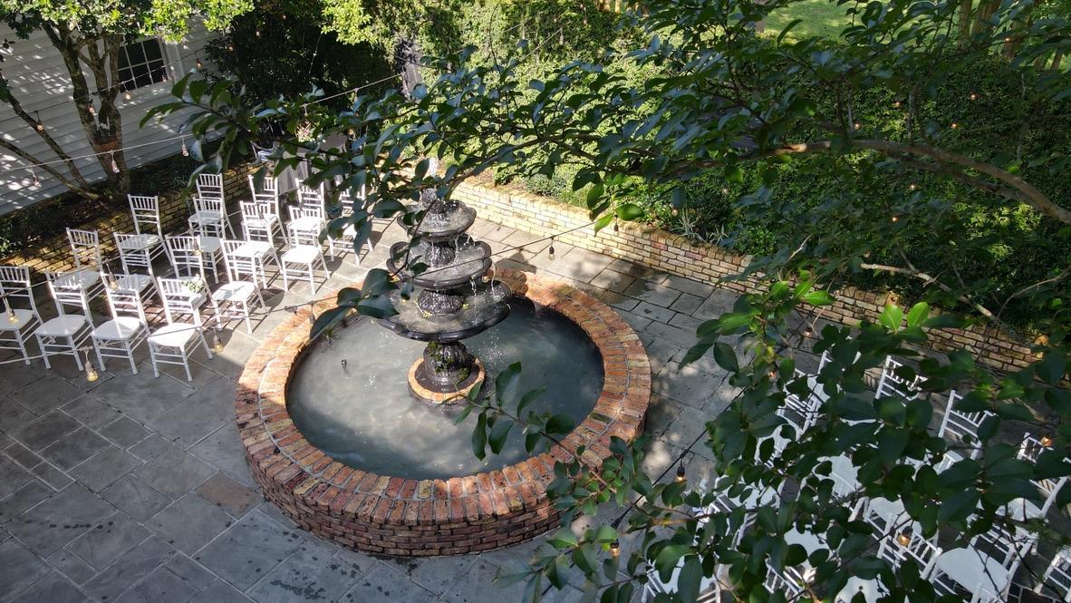 Say "I do" at our pergola overlooking the lake, frame saying your vows against a stunning lake view. Feel the breeze as sunlight dances on the water. It’s a magical blend of natural beauty & southern elegance, creating an unforgettable ceremony & romantic atmosphere for weddings. The overall experience of our estate creates memories for wedding guests, creating a sense of peace & seclusion. The surrounding landscape, which includes a mature orchard and elegant fountains & courtyards.