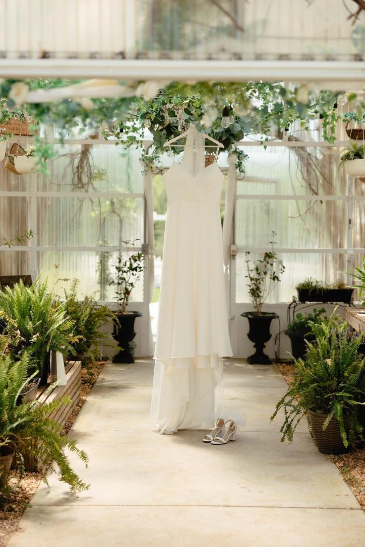 There is a special kind of magic in these stolen moments on a wedding day. Here, surrounded by glass and greenery, it's just the two of them. Every glance and gentle touch is illuminated, a perfect reflection of the warmth and beauty of their love. A memory soaked in golden light.
