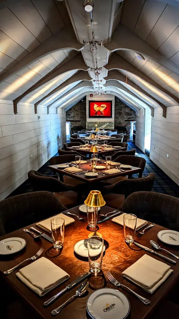 The Third Floor features sloped ceilingss and exposed beams that help to create a sense of coziness and intimacy. One of the standout features of the room is the historical stone accent walls that frame the space, adding a touch of character while highlighting the rich history of The Oregon Grille. This space also has access to a second-level deck that may be added to your private dining package. This deck is perfect in warm weather for pre-dinner cocktails and provides a stunning panoramic view of the surrounding area.