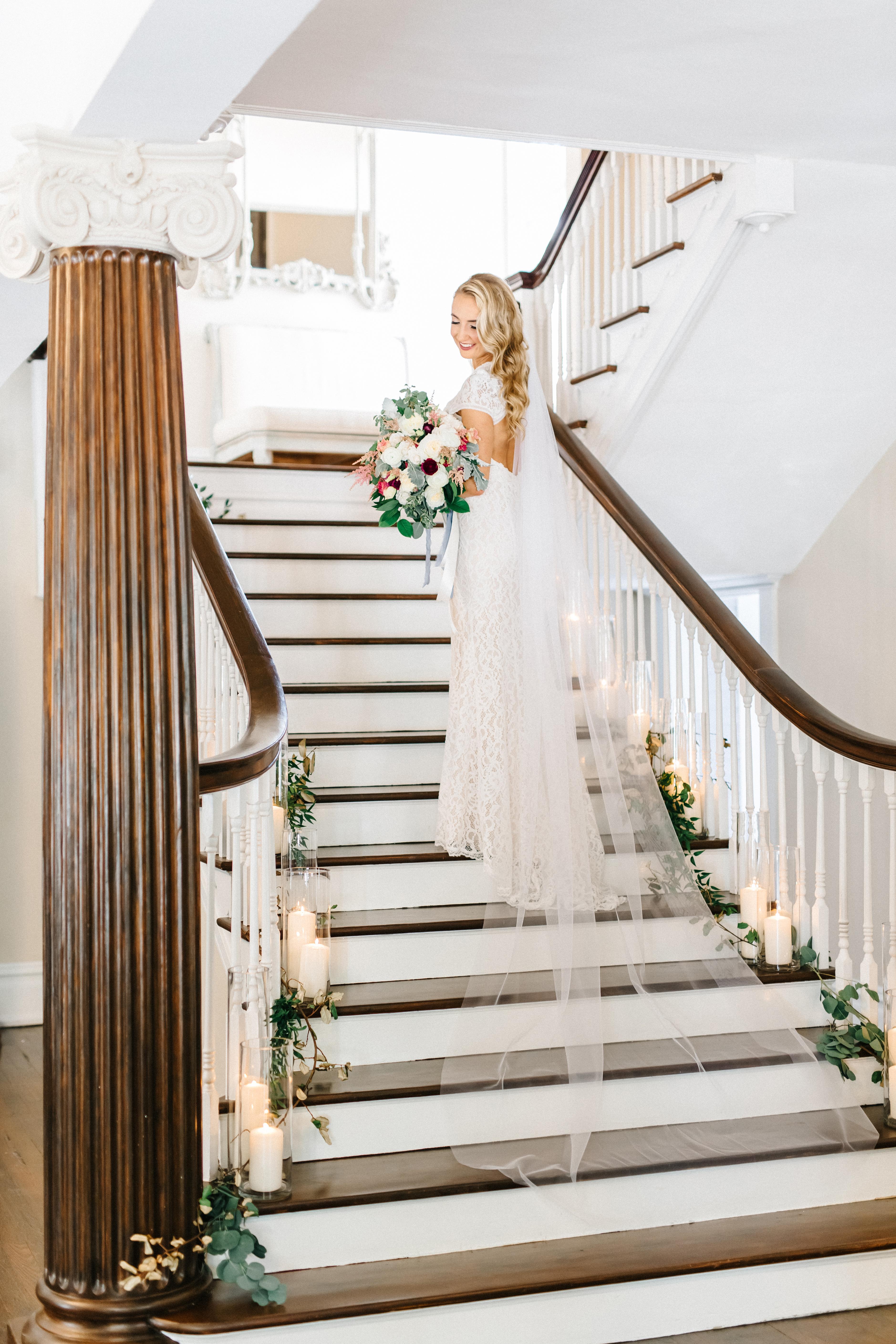 This space has 2 floors. On the first floor there are 3 large rooms perfect for an intimate but spacious event. The grand staircase is the perfect focal point for candles and florals and a grand entrance. On the second floor we have a gorgeous bridal suite for the bride to get ready with lots of windows and natural lighting.