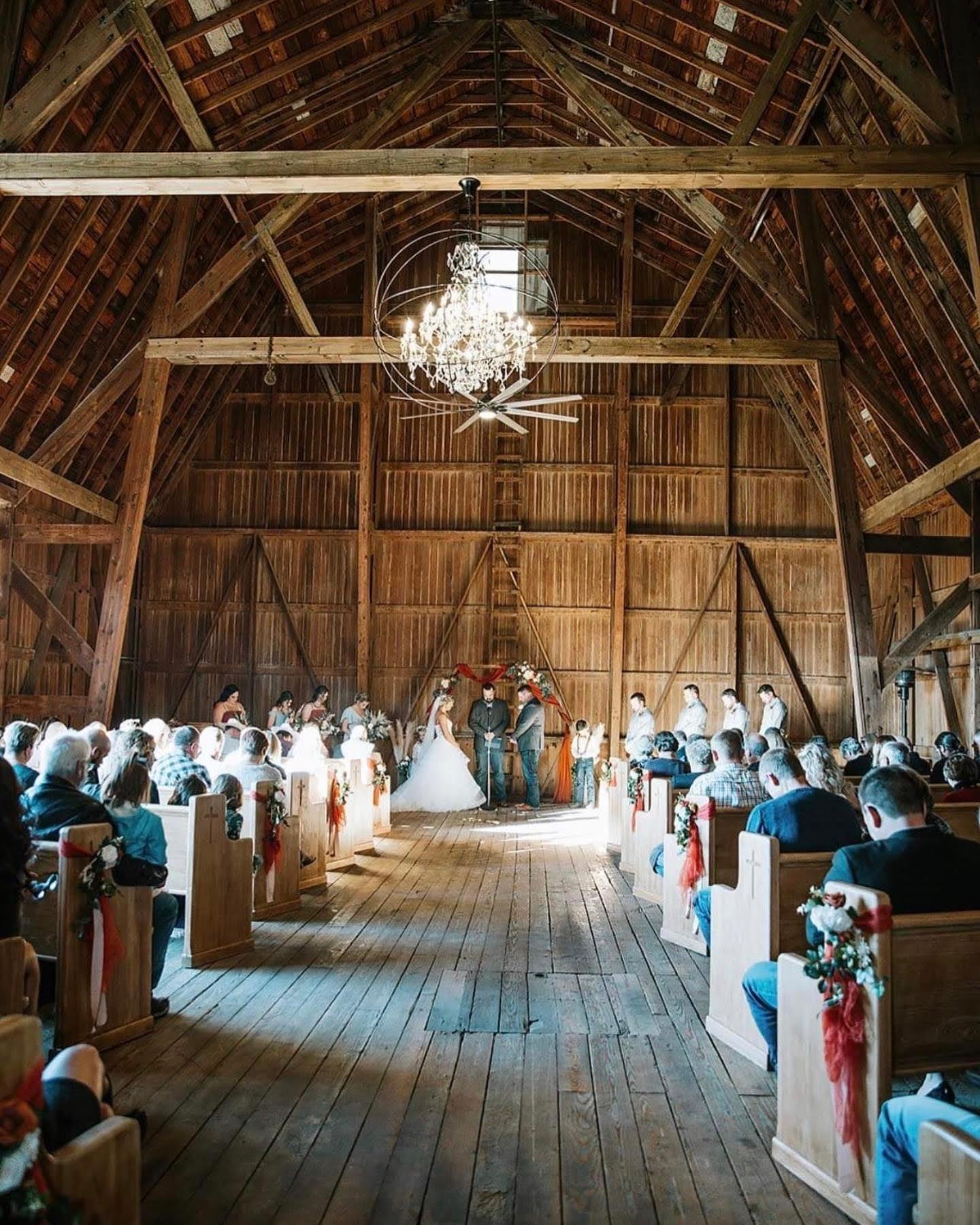 Upper Barn (The Chapel) Our Upper Barn originally built in the late 1800's provides enough seating for up to 250 guests for your ceremony. You will see as you walk up the terraced bank leading up to the upper barn the magnificent architecture inside of this old barn.
