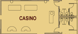 - 2 Period authentic black jack tables - 1 Hand crafted craps tables - 1 Roulette table (All tables are booked separately from the room) - Tiffany-style lighting