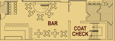 - Fully equipped wet bar - Player piano - 8’ wide stage with microphone