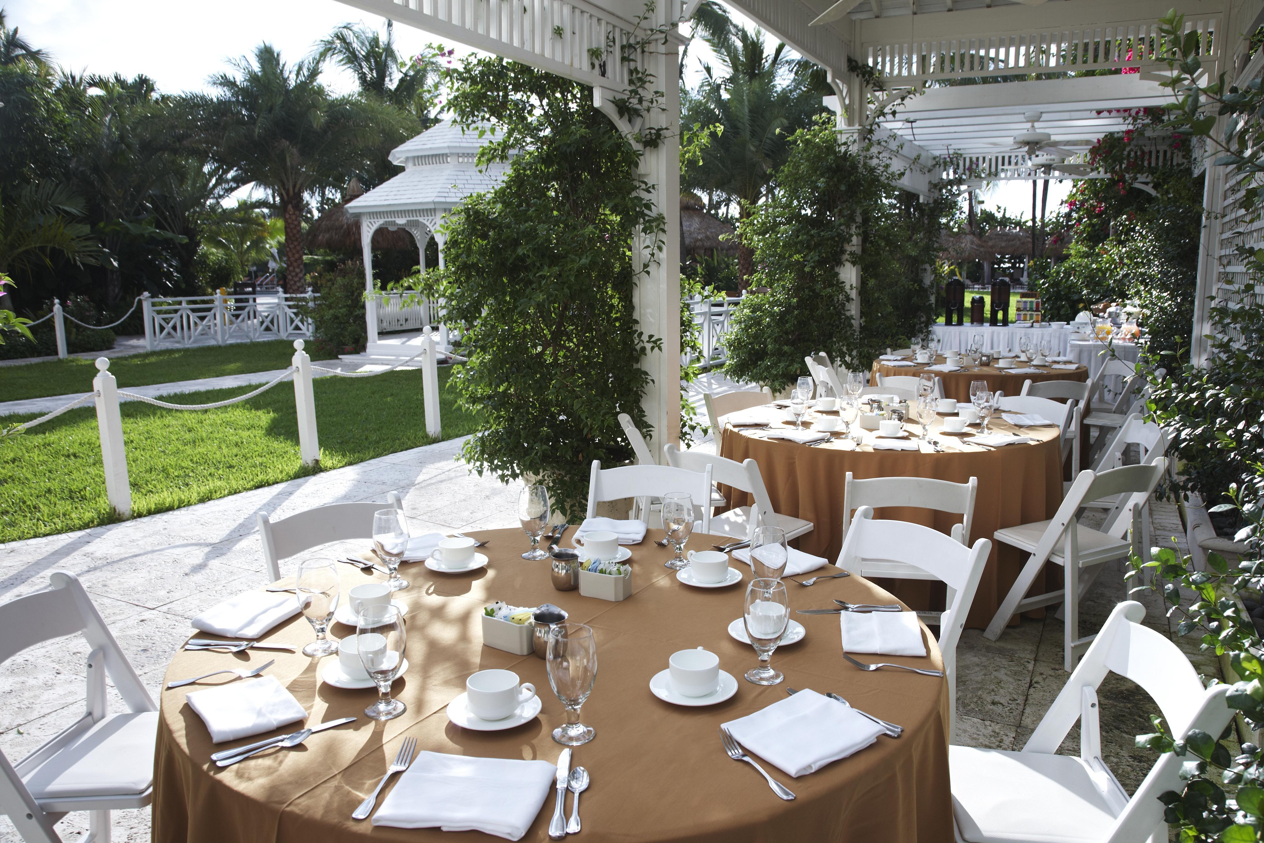 In the midst of our tropical gardens surrounded by colorful orchids and palms, this umbrella-clad terrace provides the perfect venue for poolside parties for 40 people seated for a meal or up to 80 reception guests.