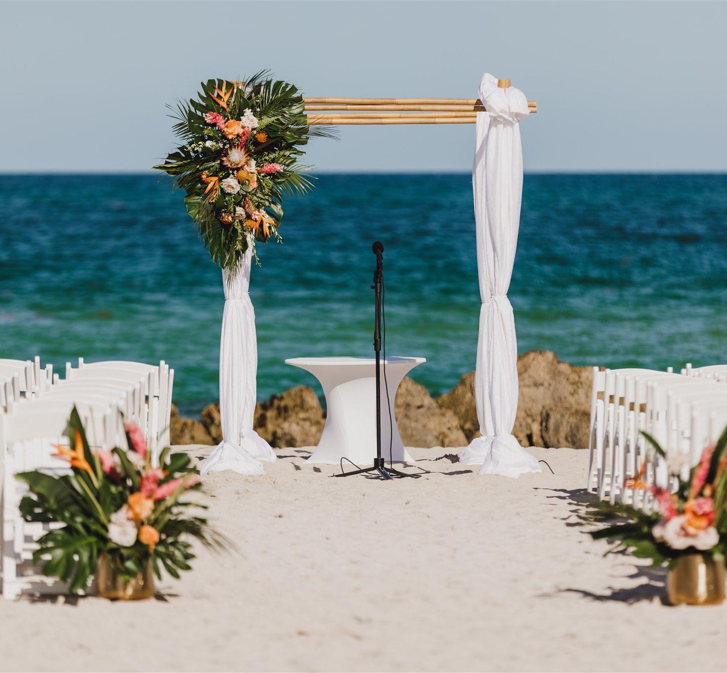 Take your first steps together in Miami Beach with an extraordinary wedding ceremony set directly on the sand.